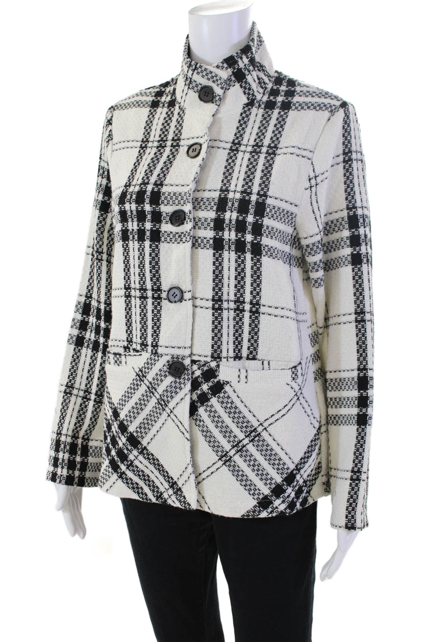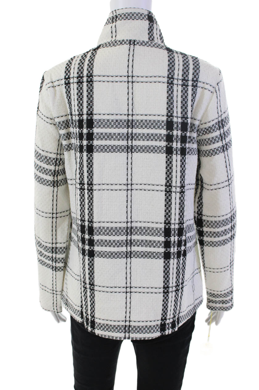 Shana Womens Plaid Button Down Long Sleeves Jacket White Black Size Small