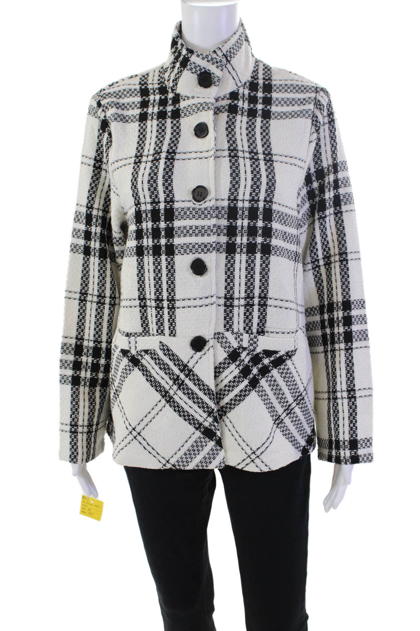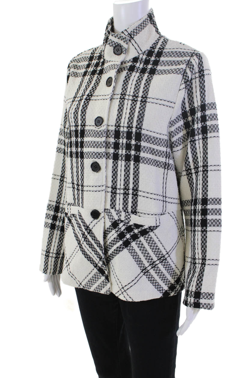 • Shana Womens Plaid Long Sleeves Button Down Jacket White Black Size Extra Large