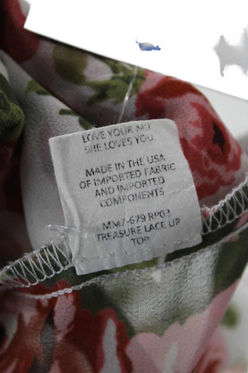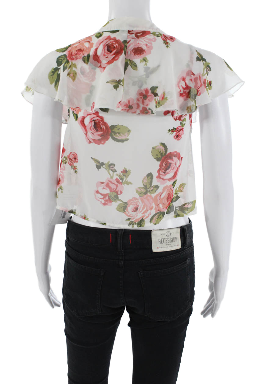 Show Me Your Mumu Womens Short Sleeve Floral Printed Sheer Top White Size S