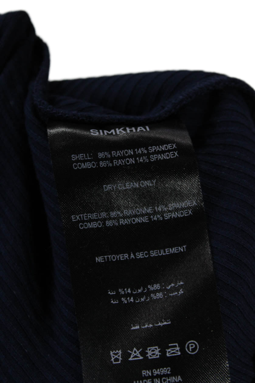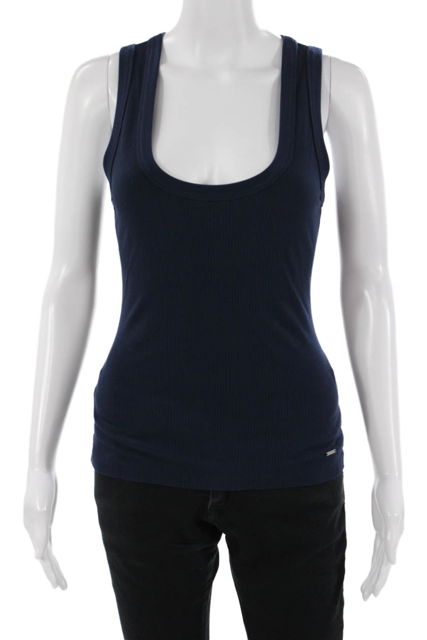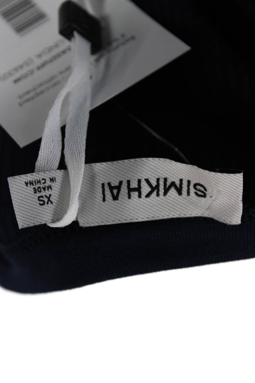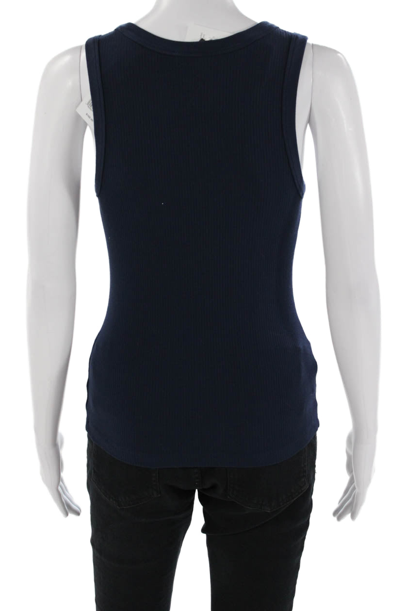 Simkhai Women Basic Dark Blue Round Neck Solid Tank Rayon Spandex Size XS
