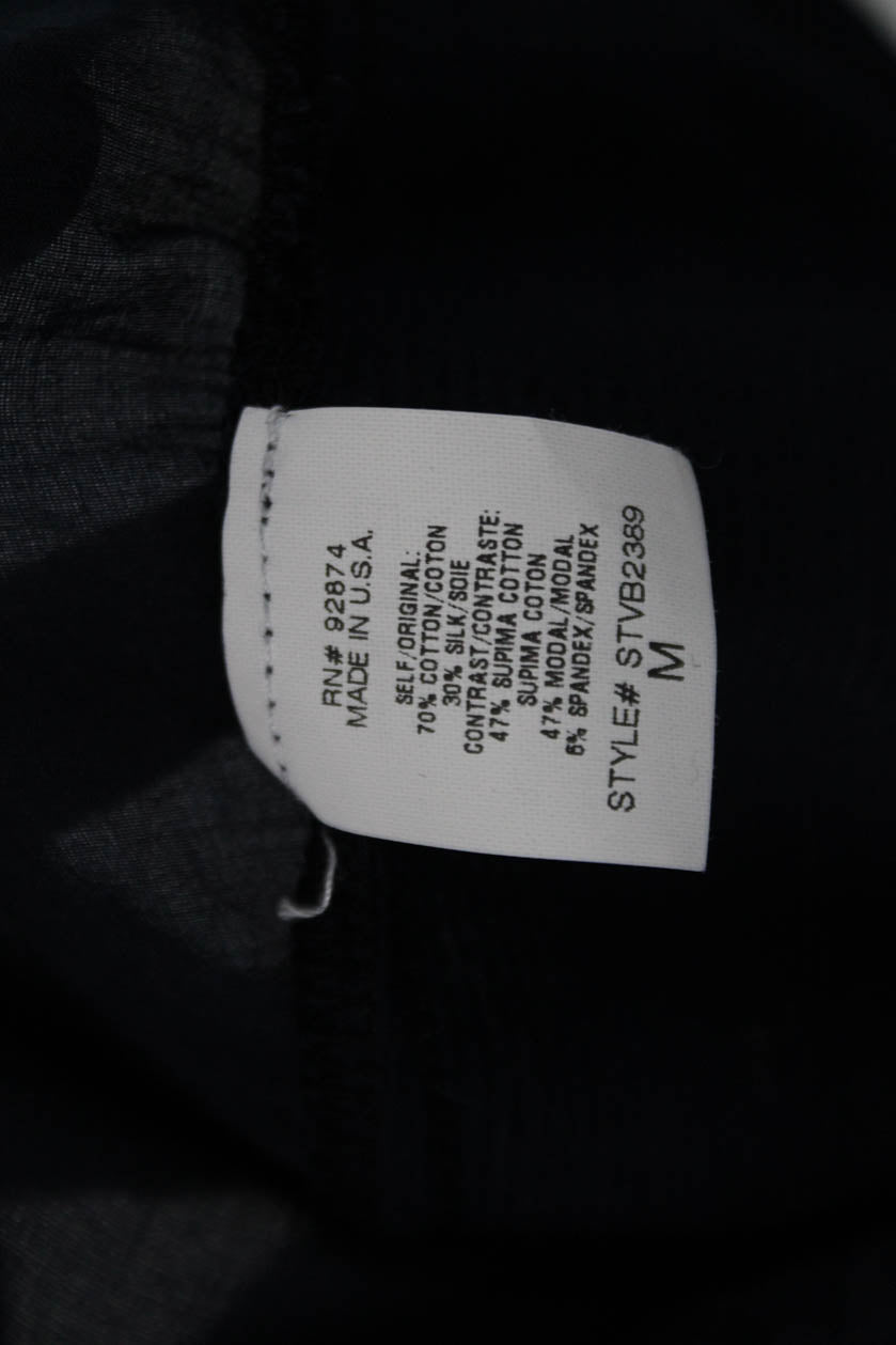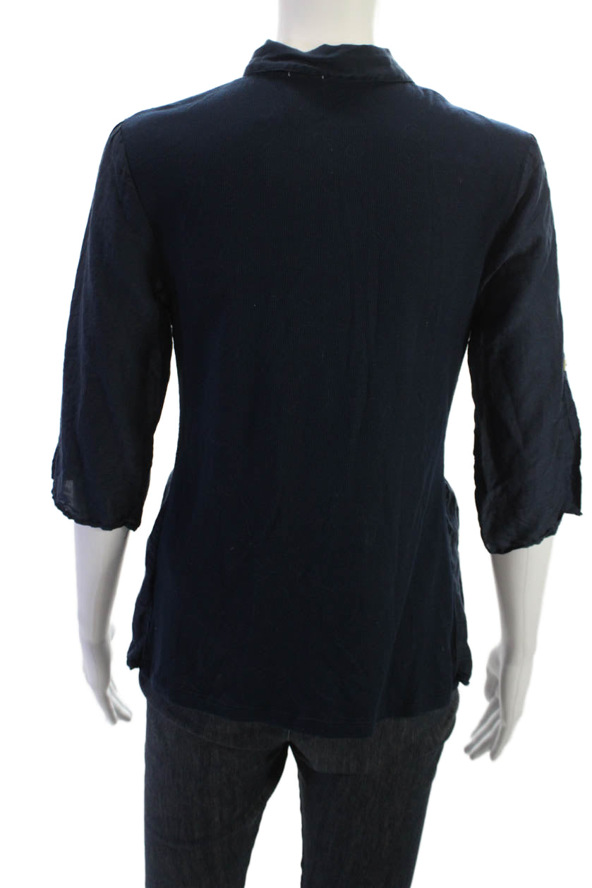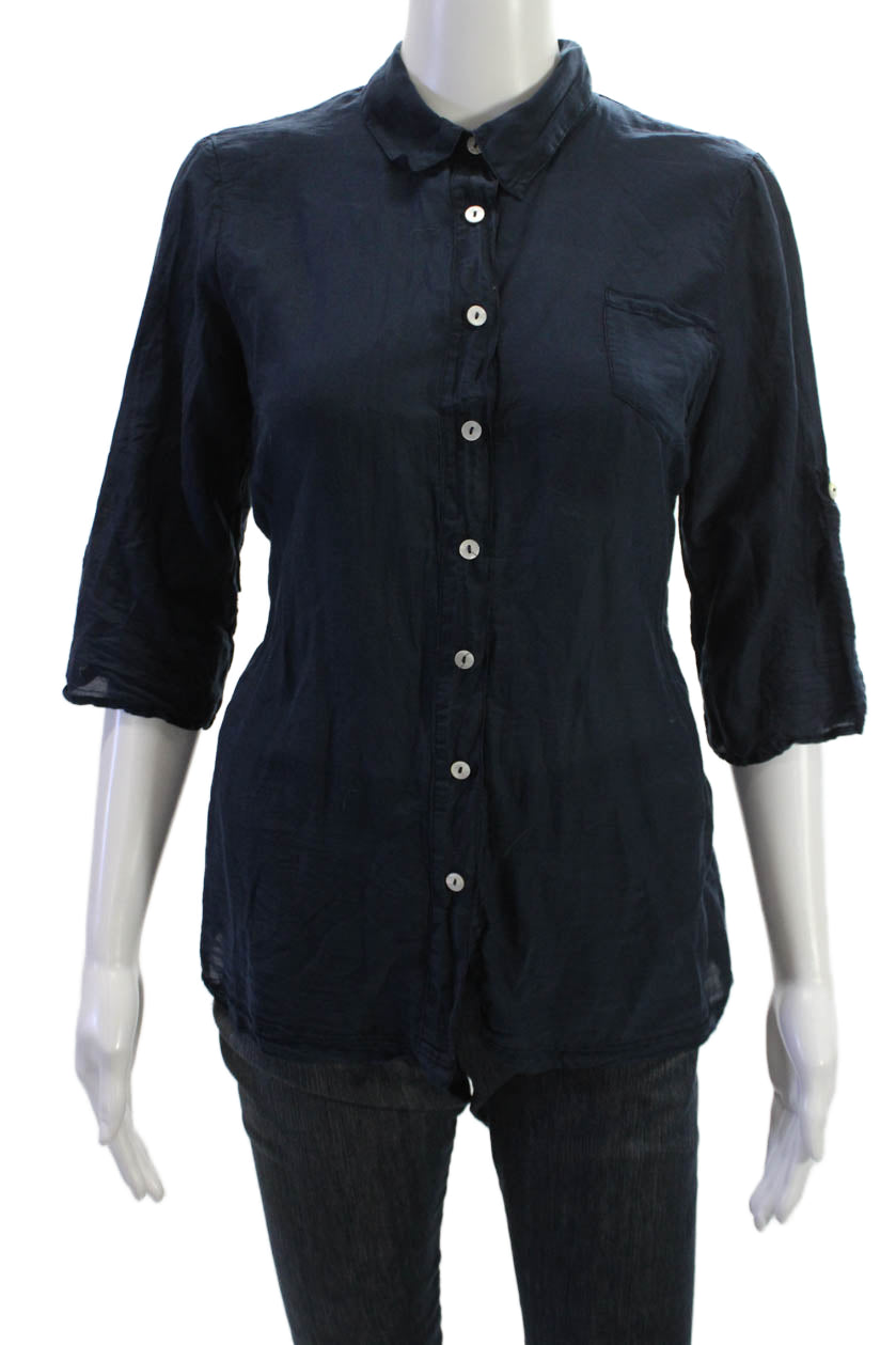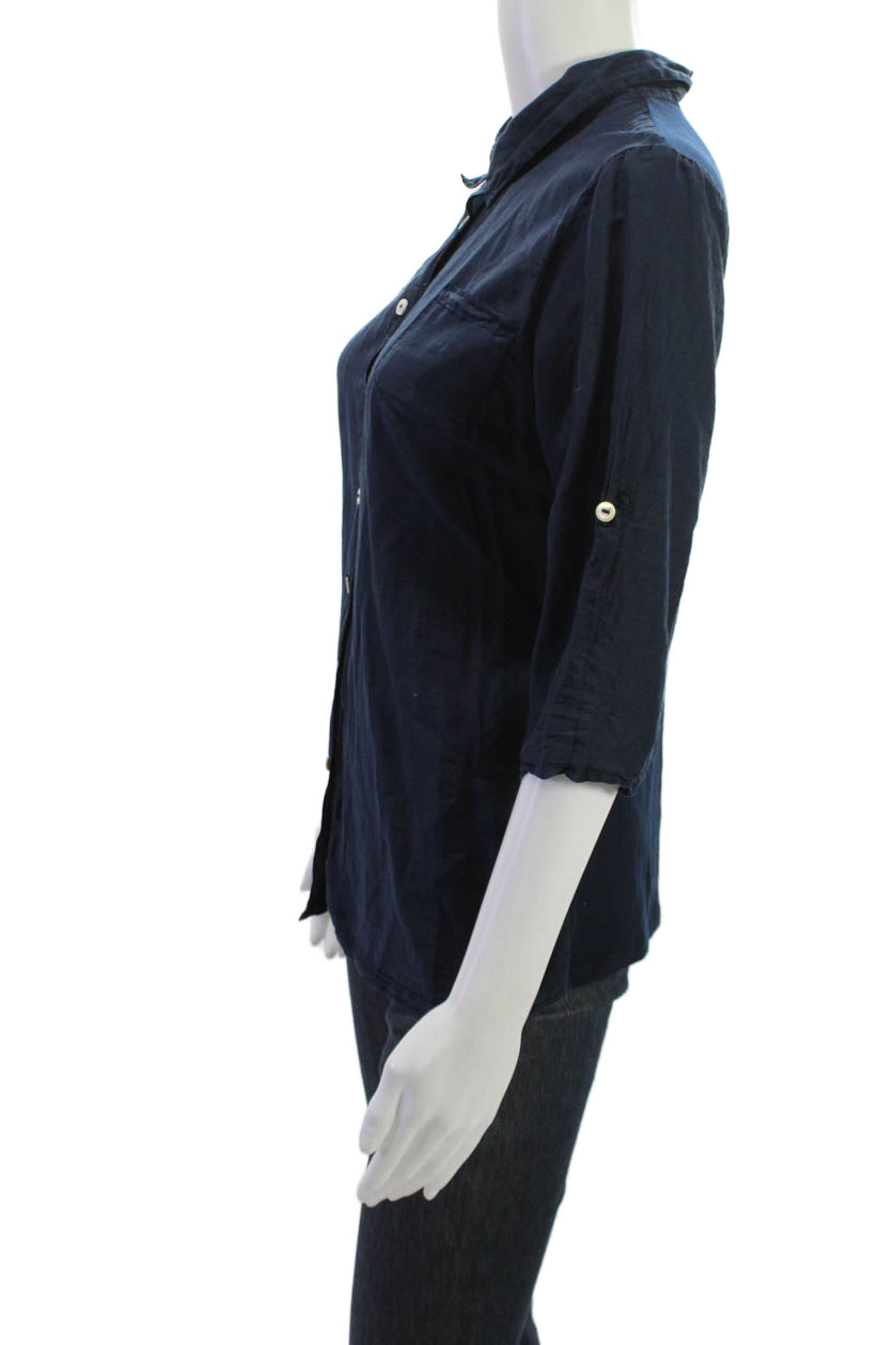 Splendid Womens Collared Dark Blue Cotton Silk Button-Up Top 3/4 Sleeve Size M