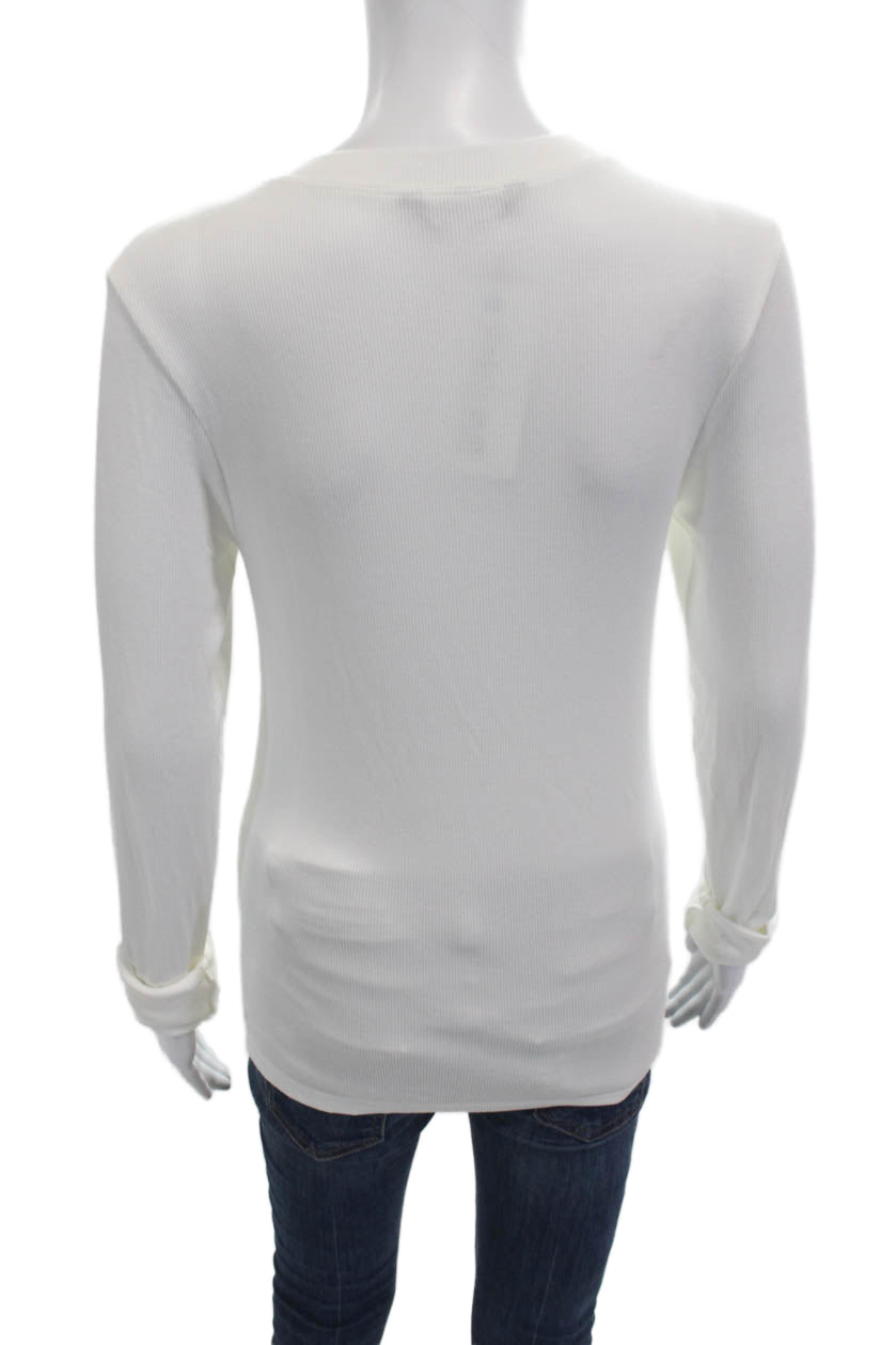 Splits 59 Women Basic White Rayon Blend Long Sleeve Crew Neck T-Shirt Size L