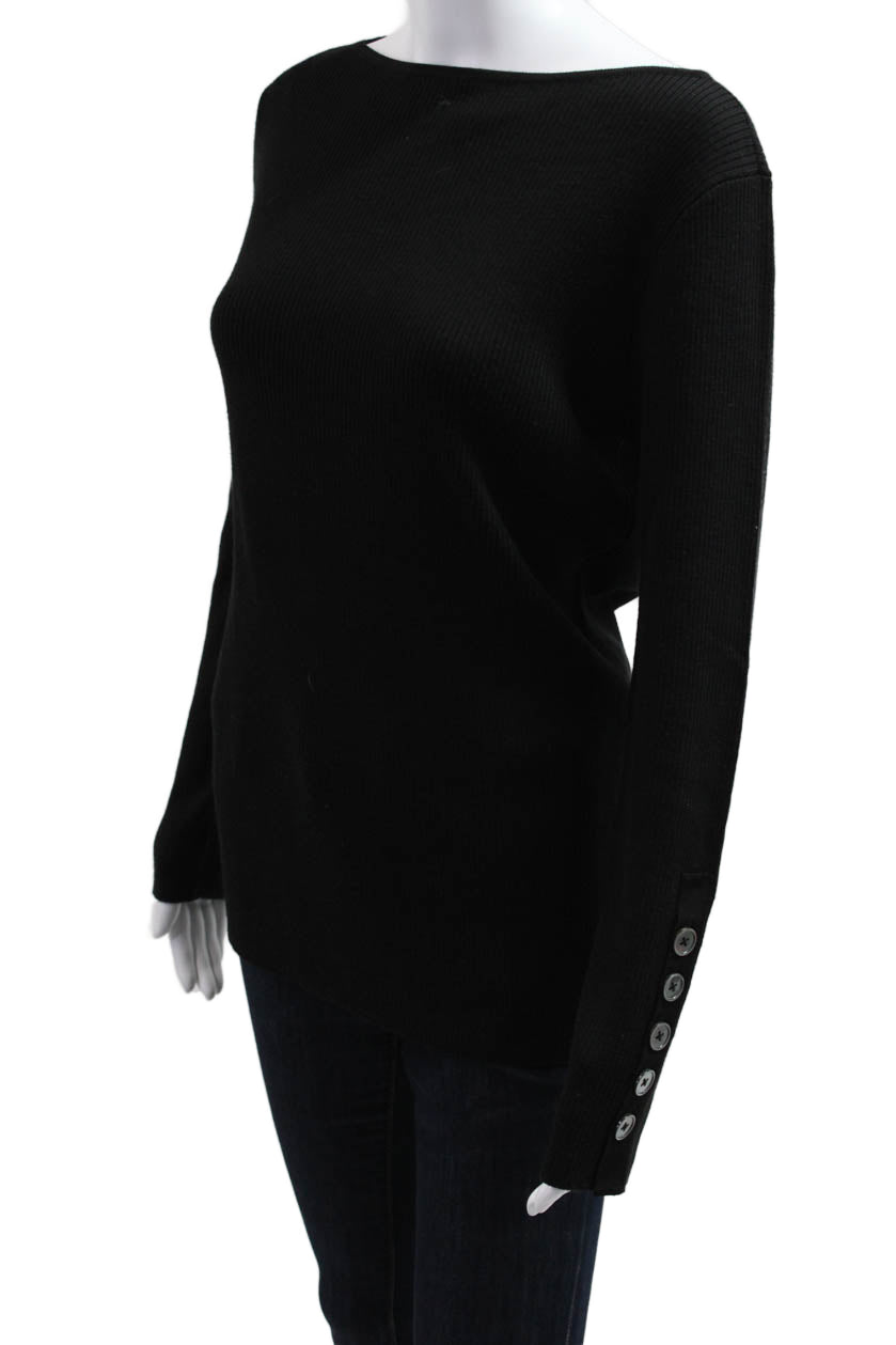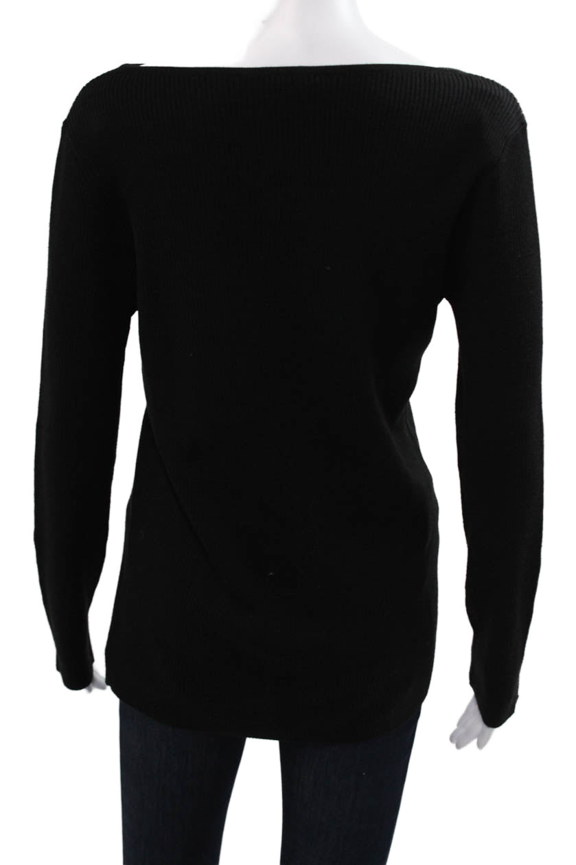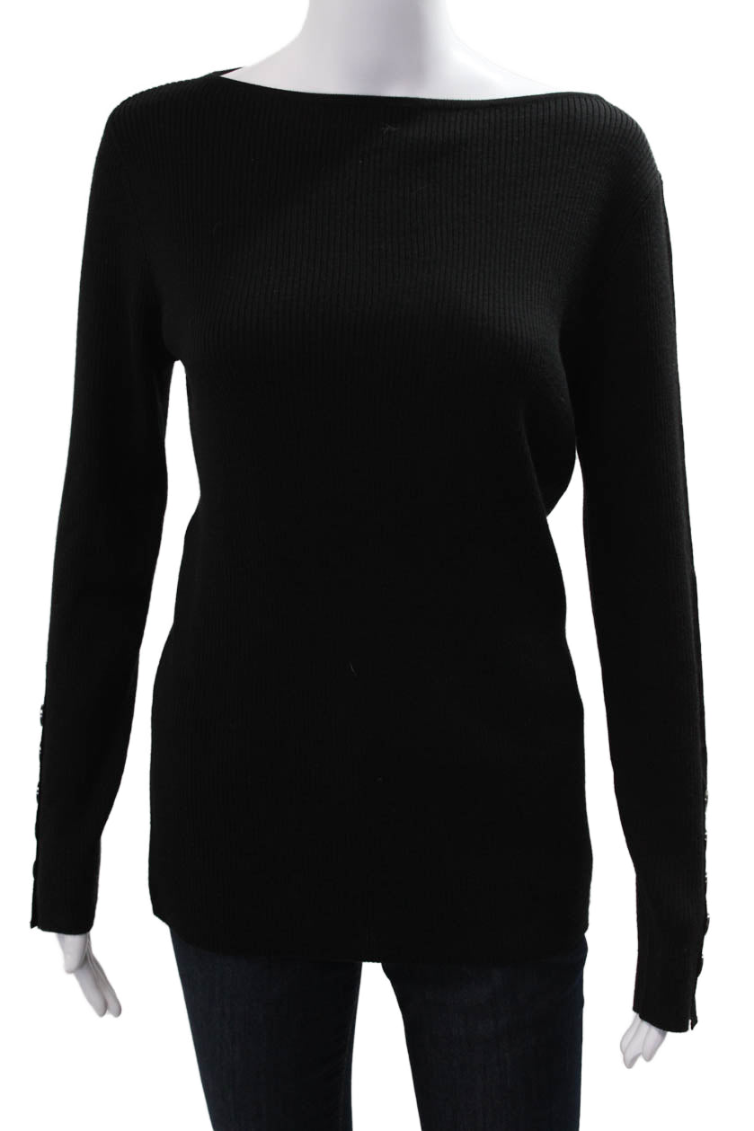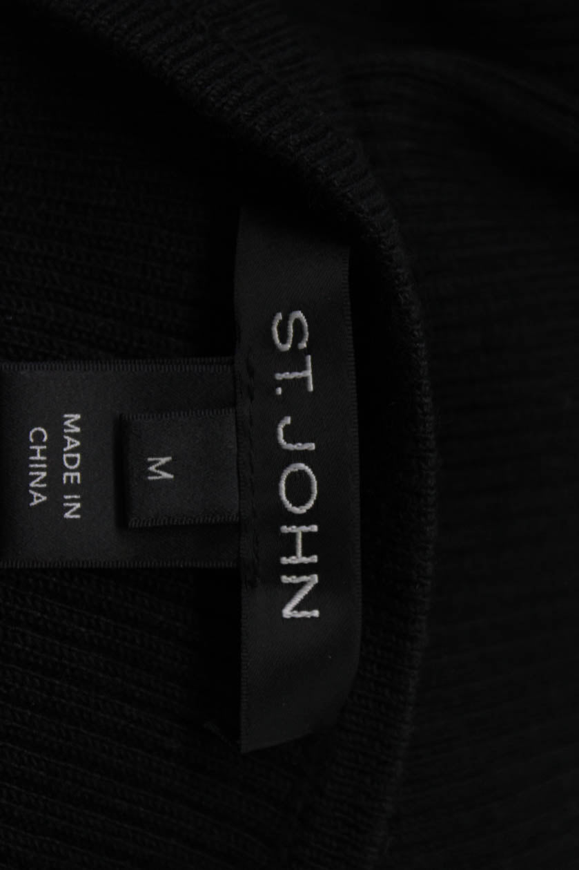 St. John Women Pullover Sweater Black 60% Wool 40% Polyamide Long Sleeve Size M