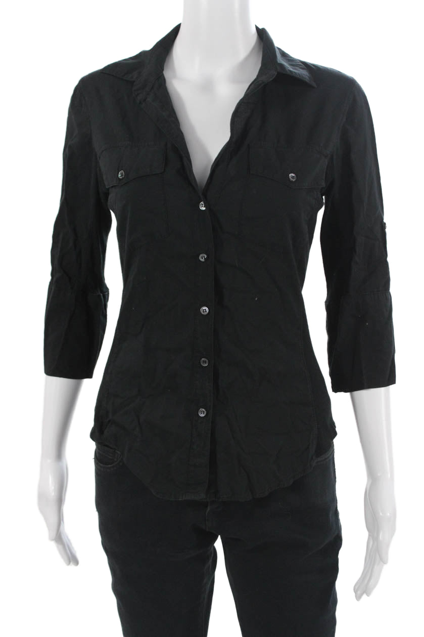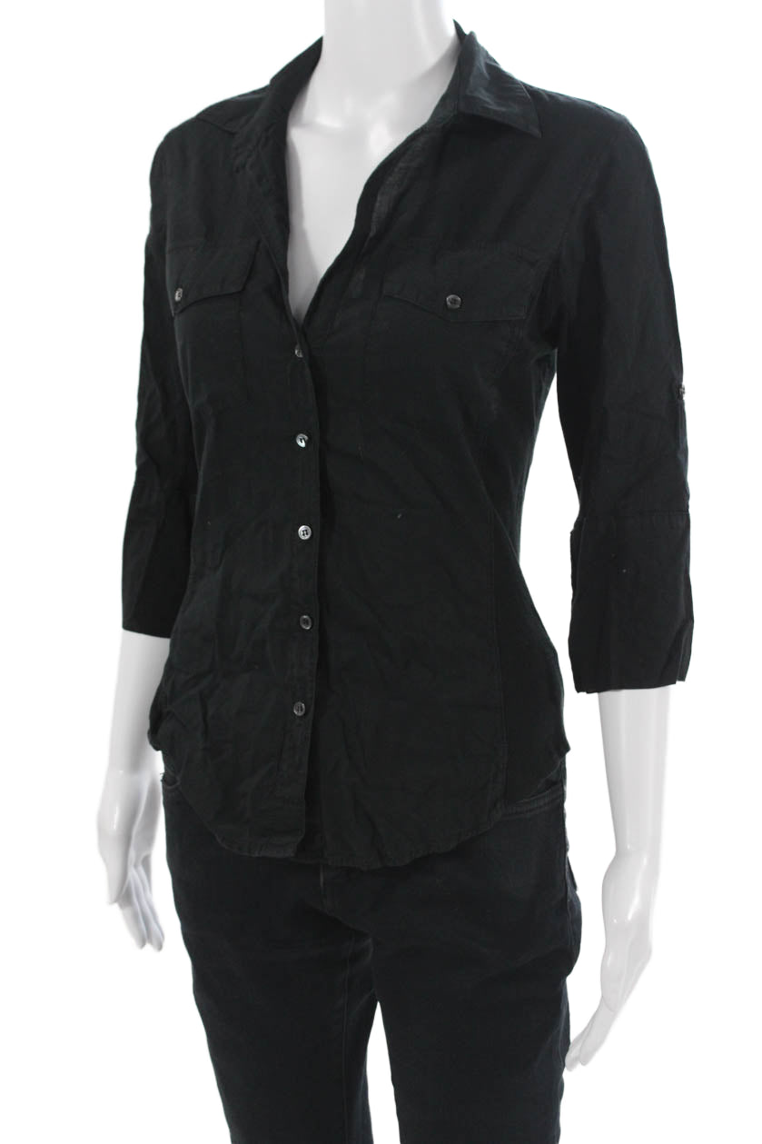 Standard James Perse Women Black Button Up Top 3/4 Sleeve 100% Cotton Size 1
