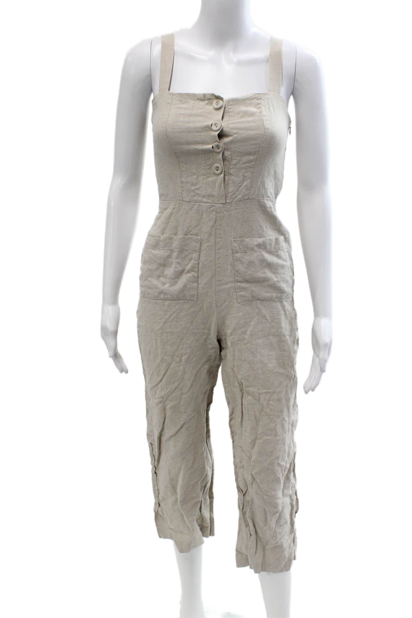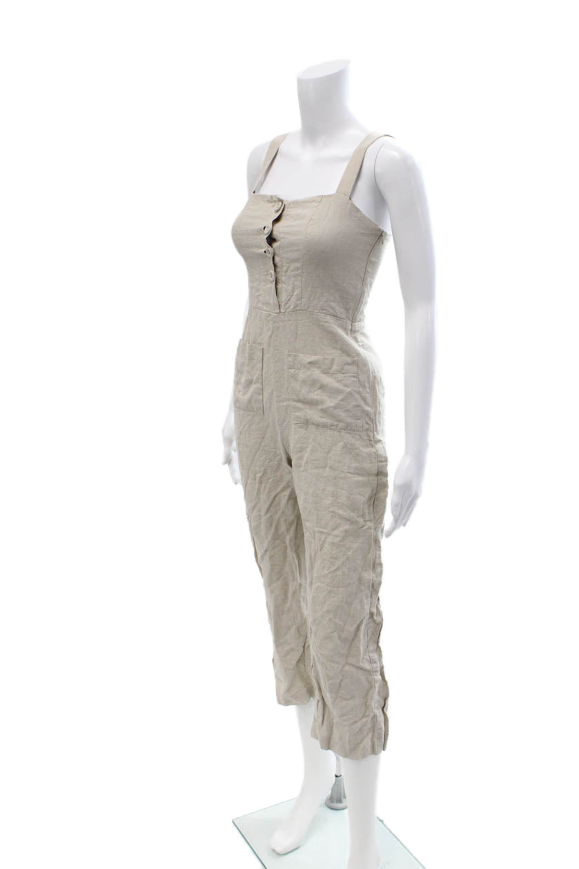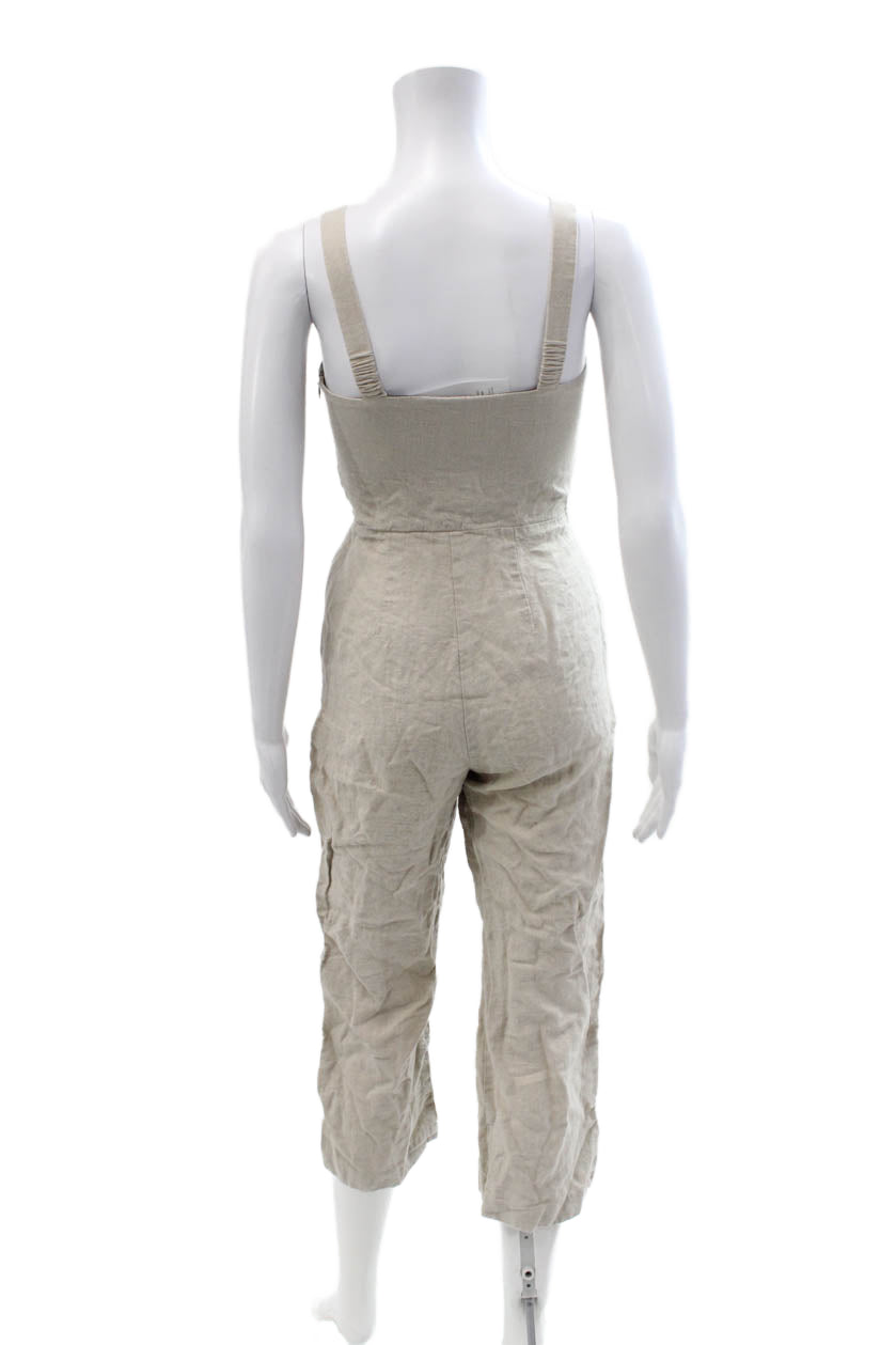 Staud Women Beige Linen Square Neck Sleeveless Jumpsuit Size 0