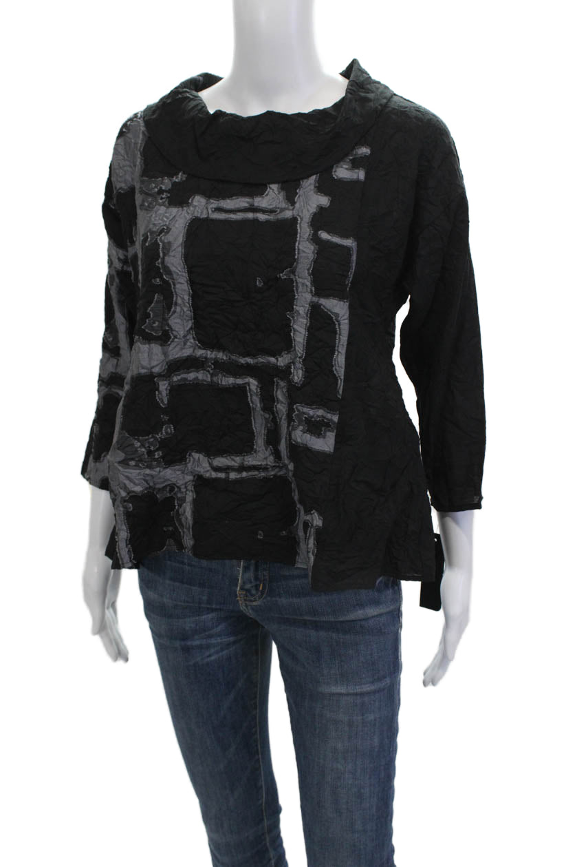 Sydney Womens Black Geometric Mock Neck Button Blouse 3/4 Sleeve Size S