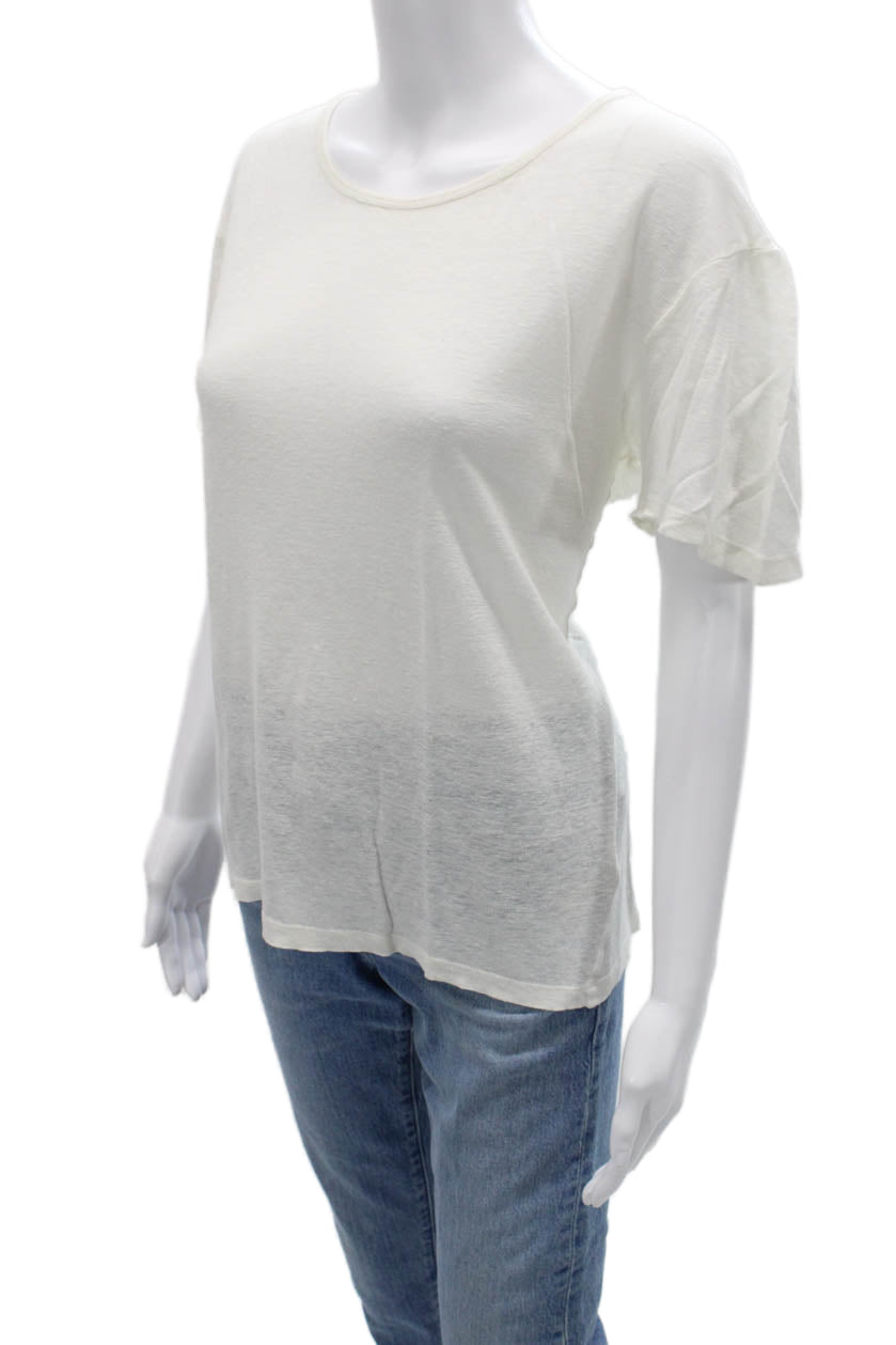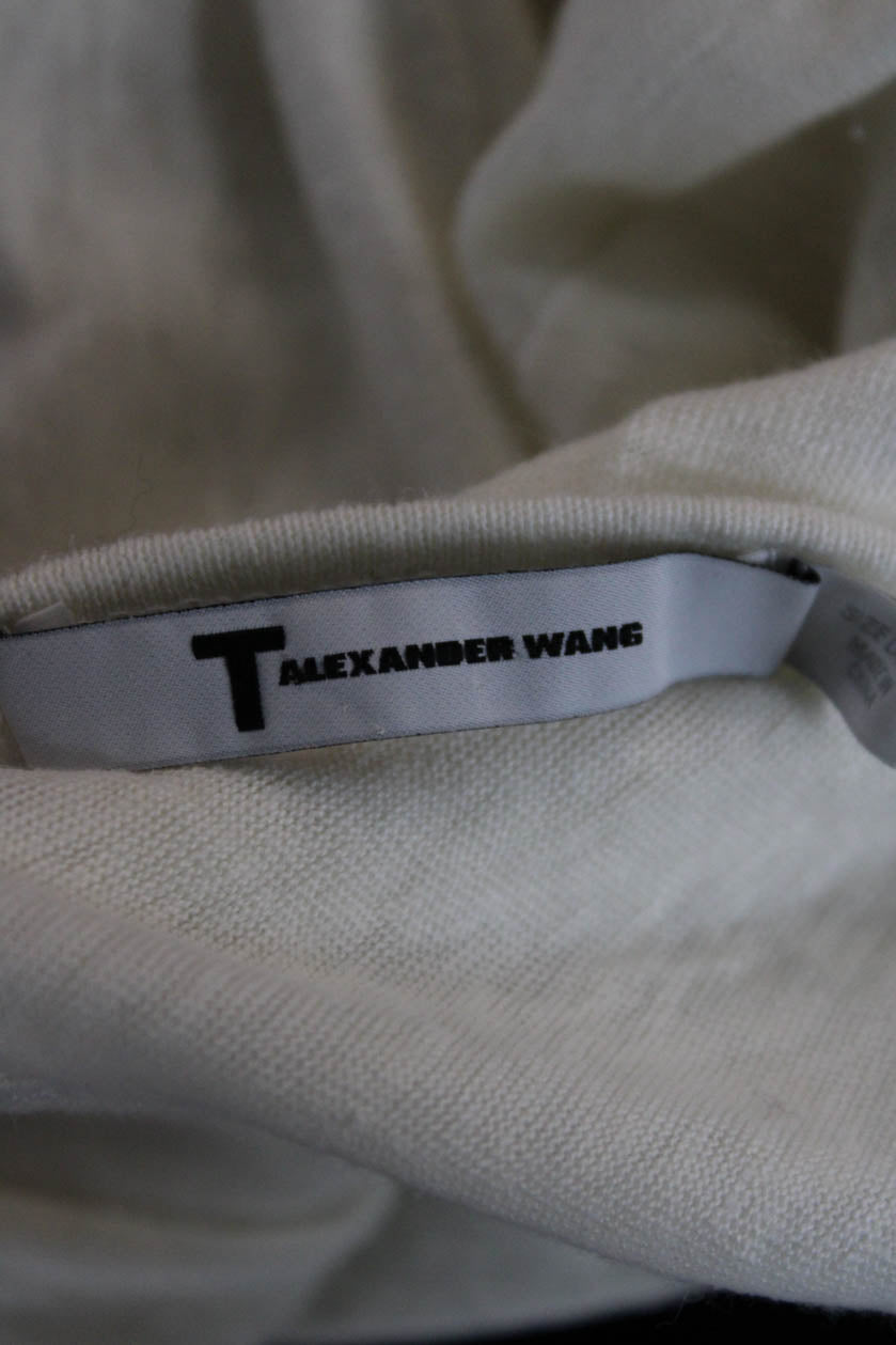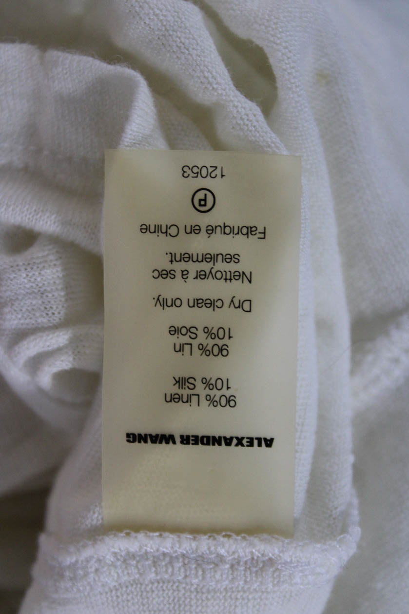 T Alexander Wang Womens Basic White Silk Short Sleeve T-Shirt Size L