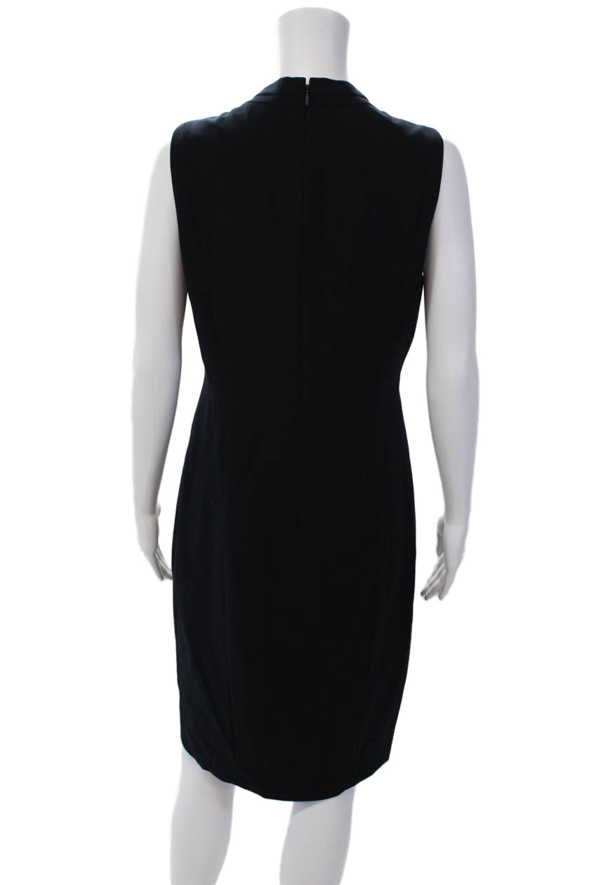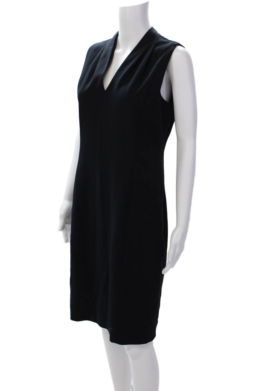 T Tahari Womens V-Neck Sleeveless Zip Up Mid-Calf Pencil Dress Navy Size 8