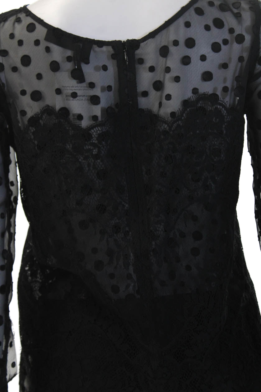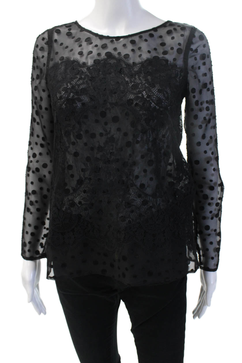 The Kooples Women Black Polka Dot Round Neck Long Sleeve Blouse Gothic Size S