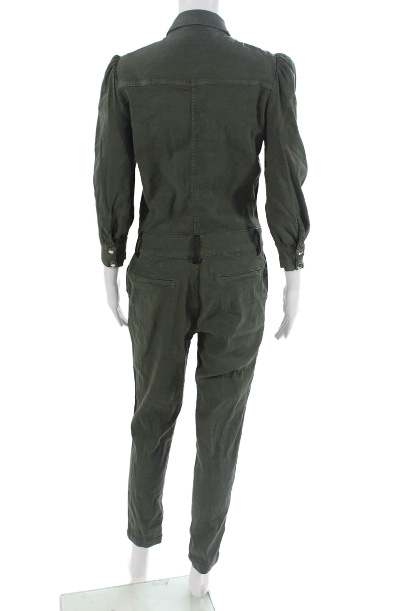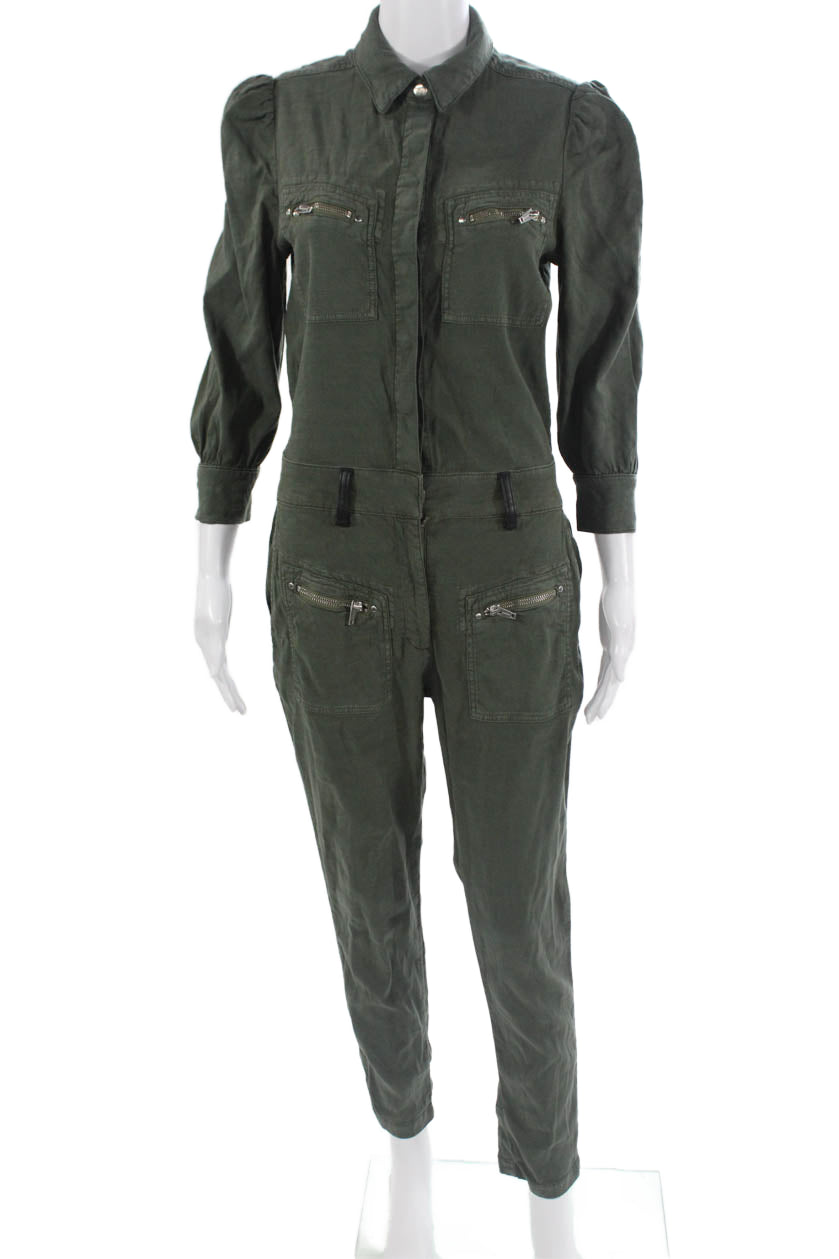The Kooples Women Green Collared 3/4 Sleeve Jumpsuit Size 1