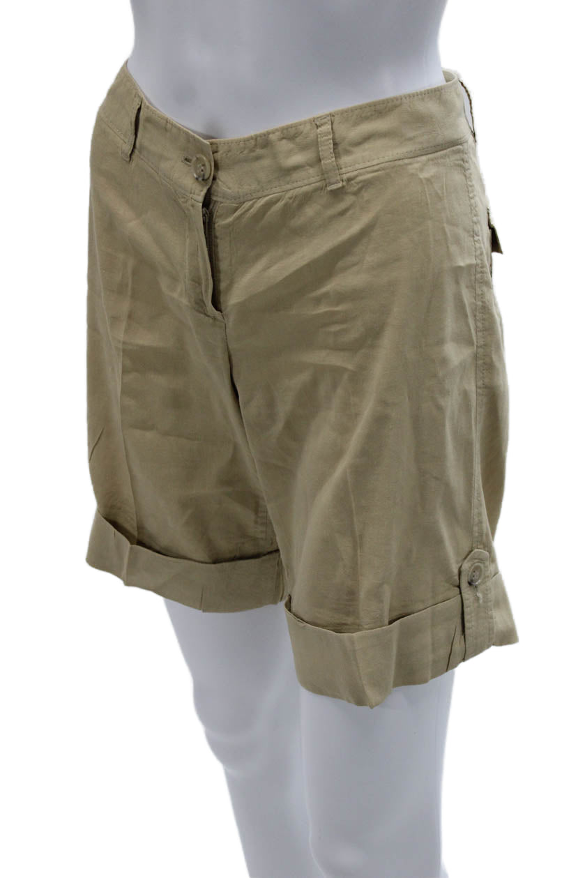 Theory Unisex Bermuda Chino Shorts Beige Linen Viscose Blend Size 00