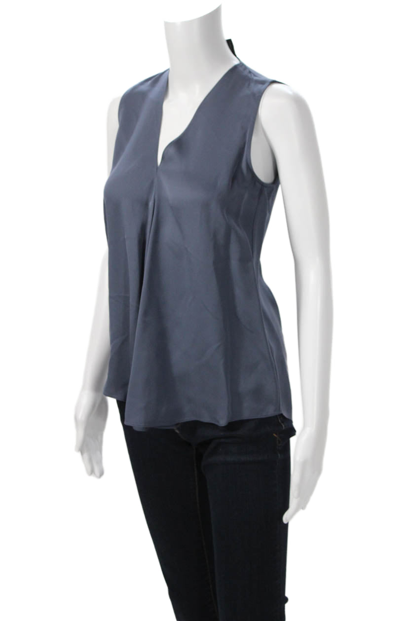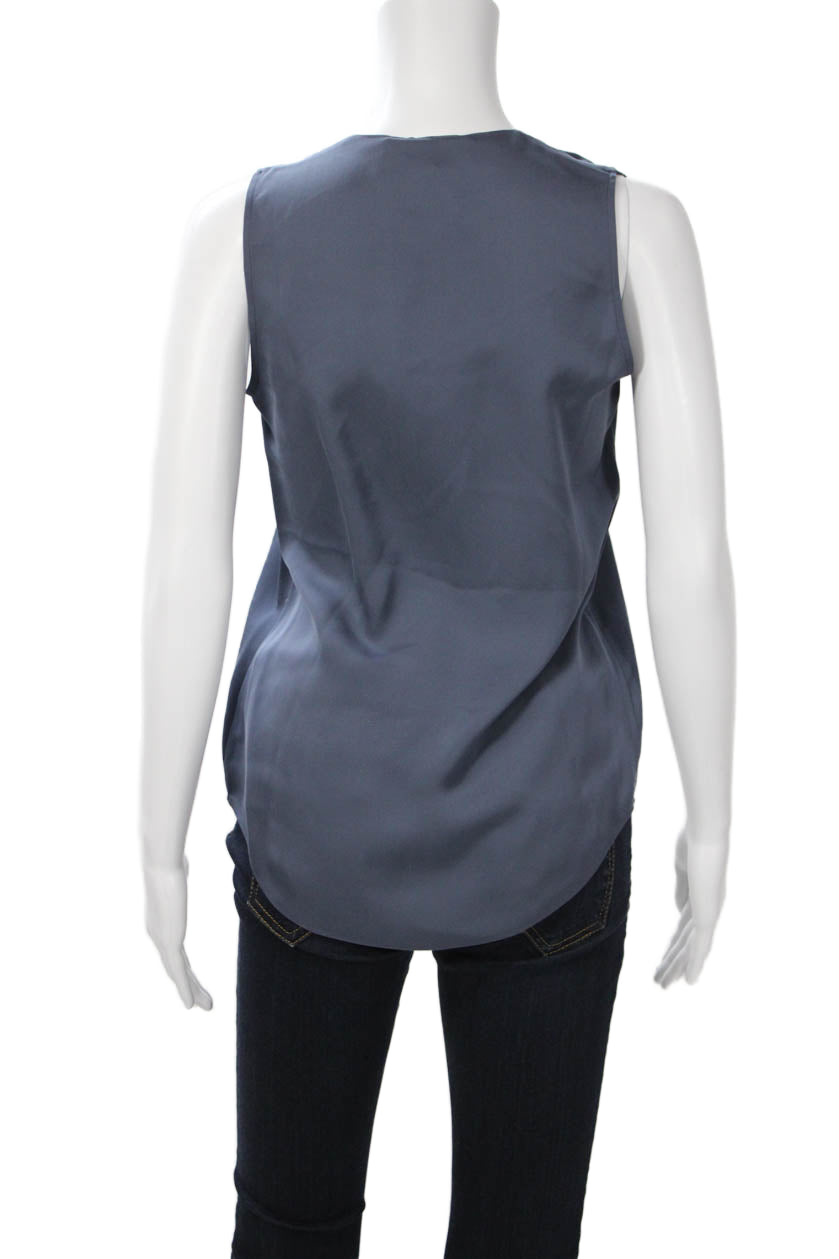 Theory Women Silk V-Neck Sleeveless Solid Blouse Dark Blue Size PP