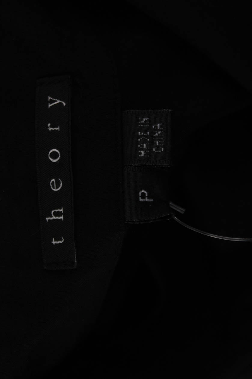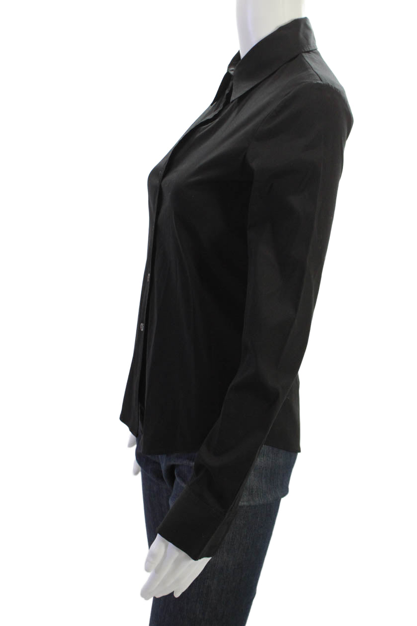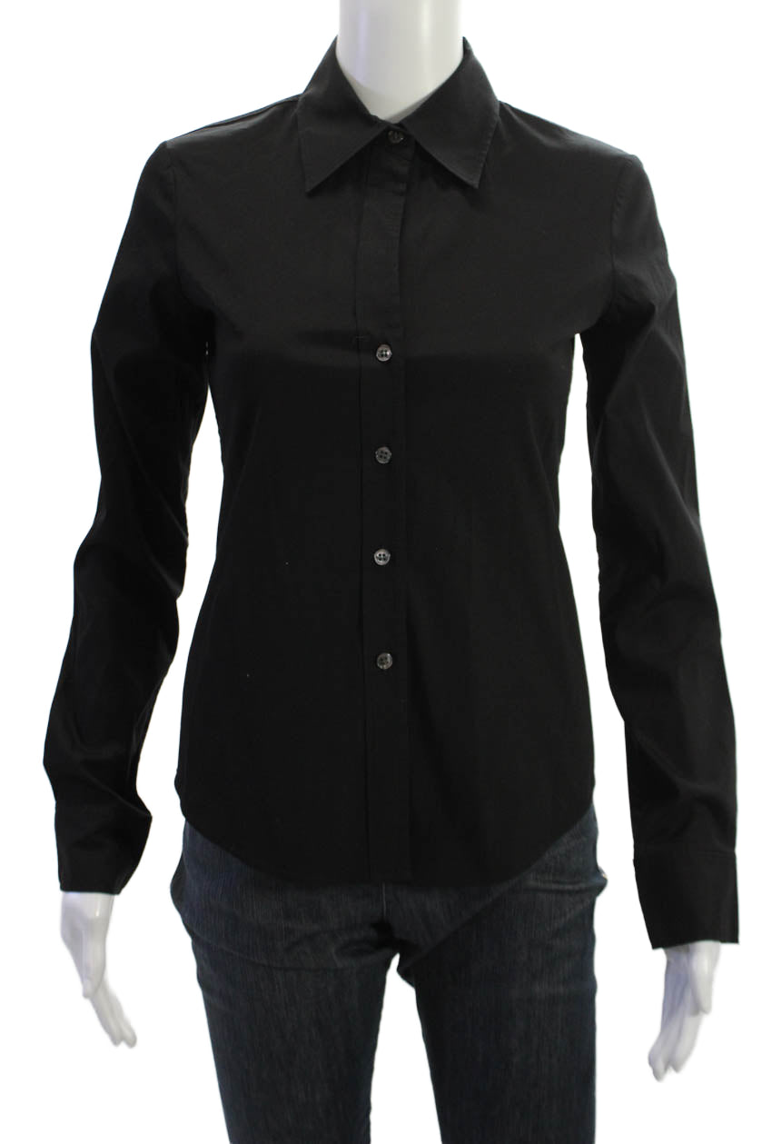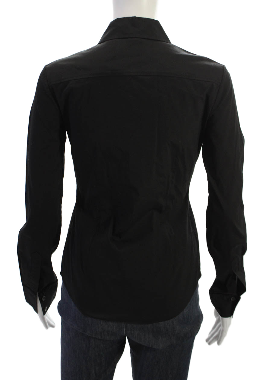 Theory Womens Black Collared Long Sleeve Button Up Basic Blouse Petite Size S
