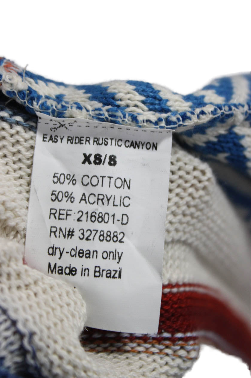 Tina Demel Women V-Neck Striped Cape Sweater Ivory Cotton Sleeveless Size XS