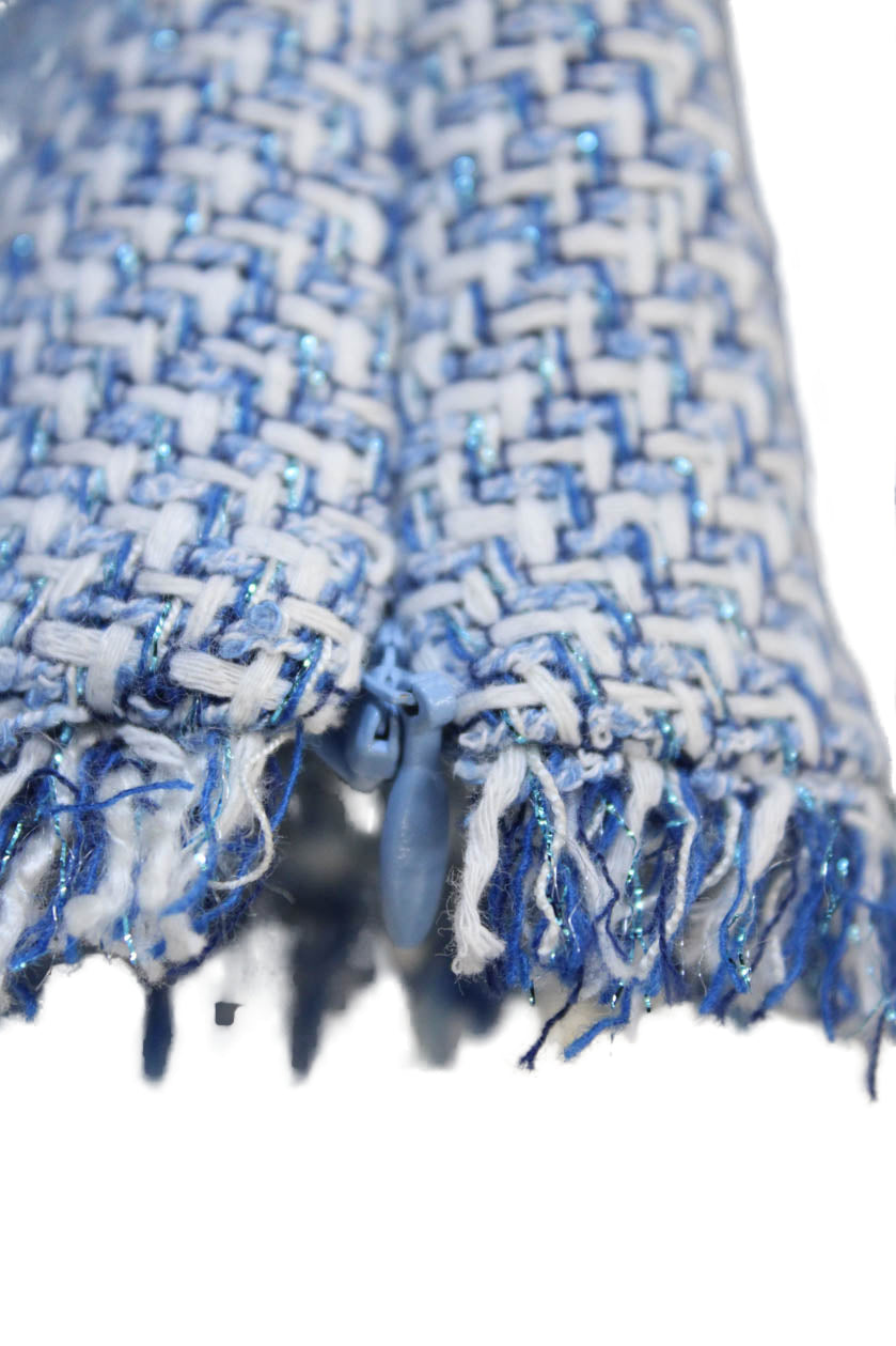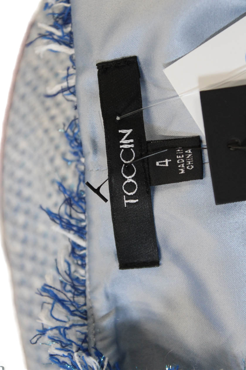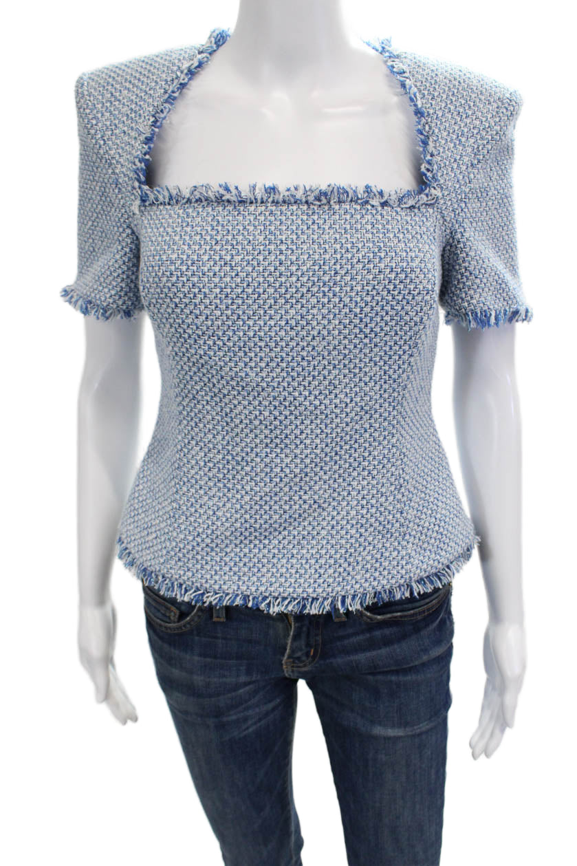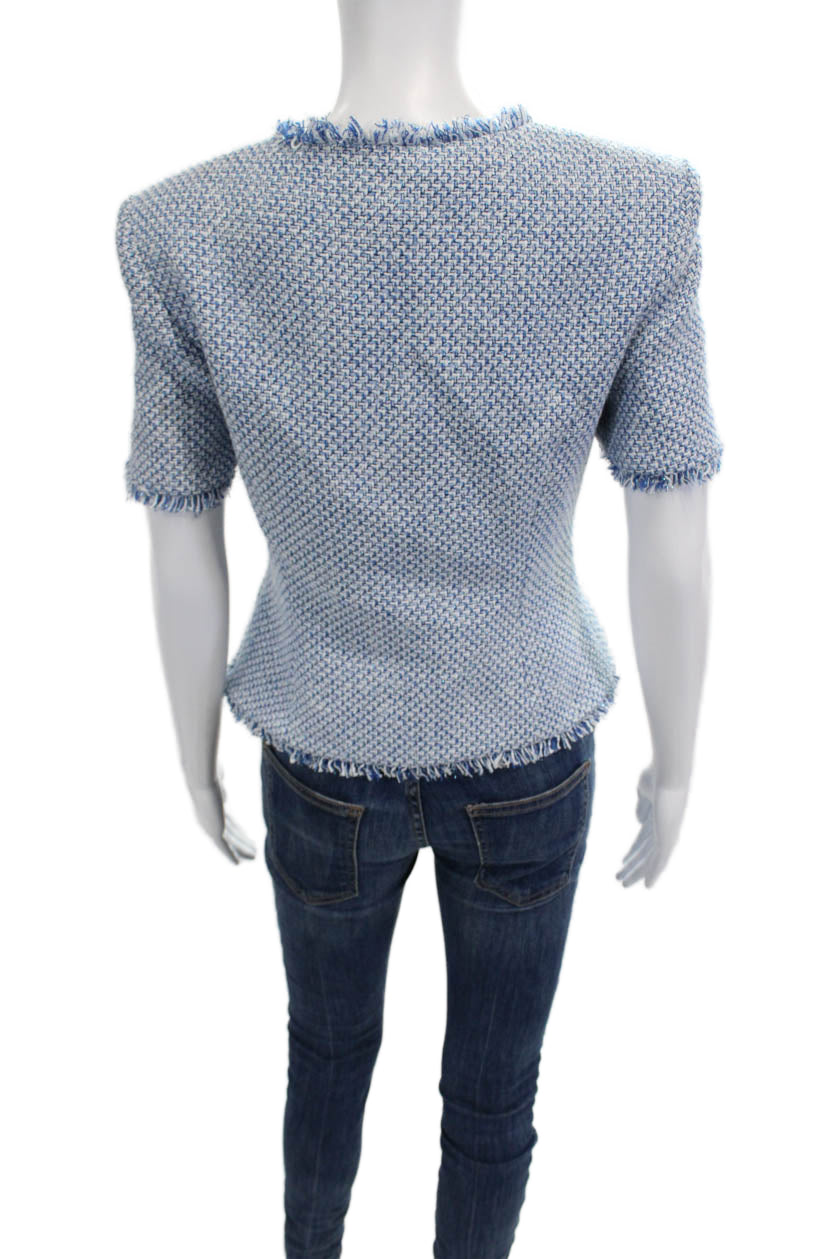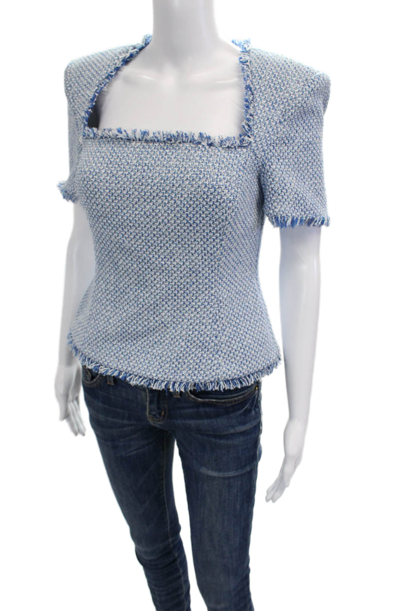 Toccin Women Blue Square Neck Short Sleeve Blouse Zip Polyester Blend Size 4
