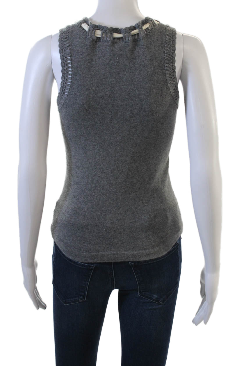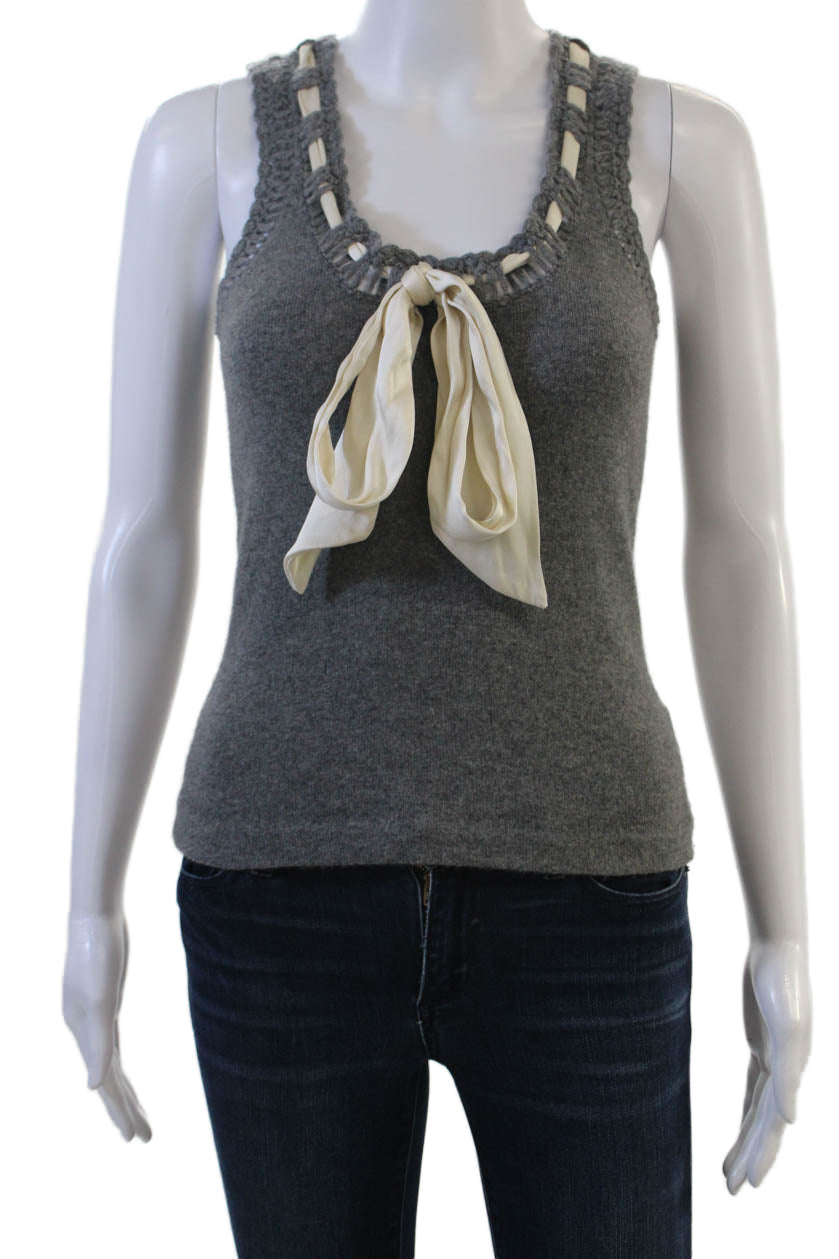 Tory Burch Womens 100% Cashmere V Neck Sleeveless Tank Sweater Gray Tie Size XS