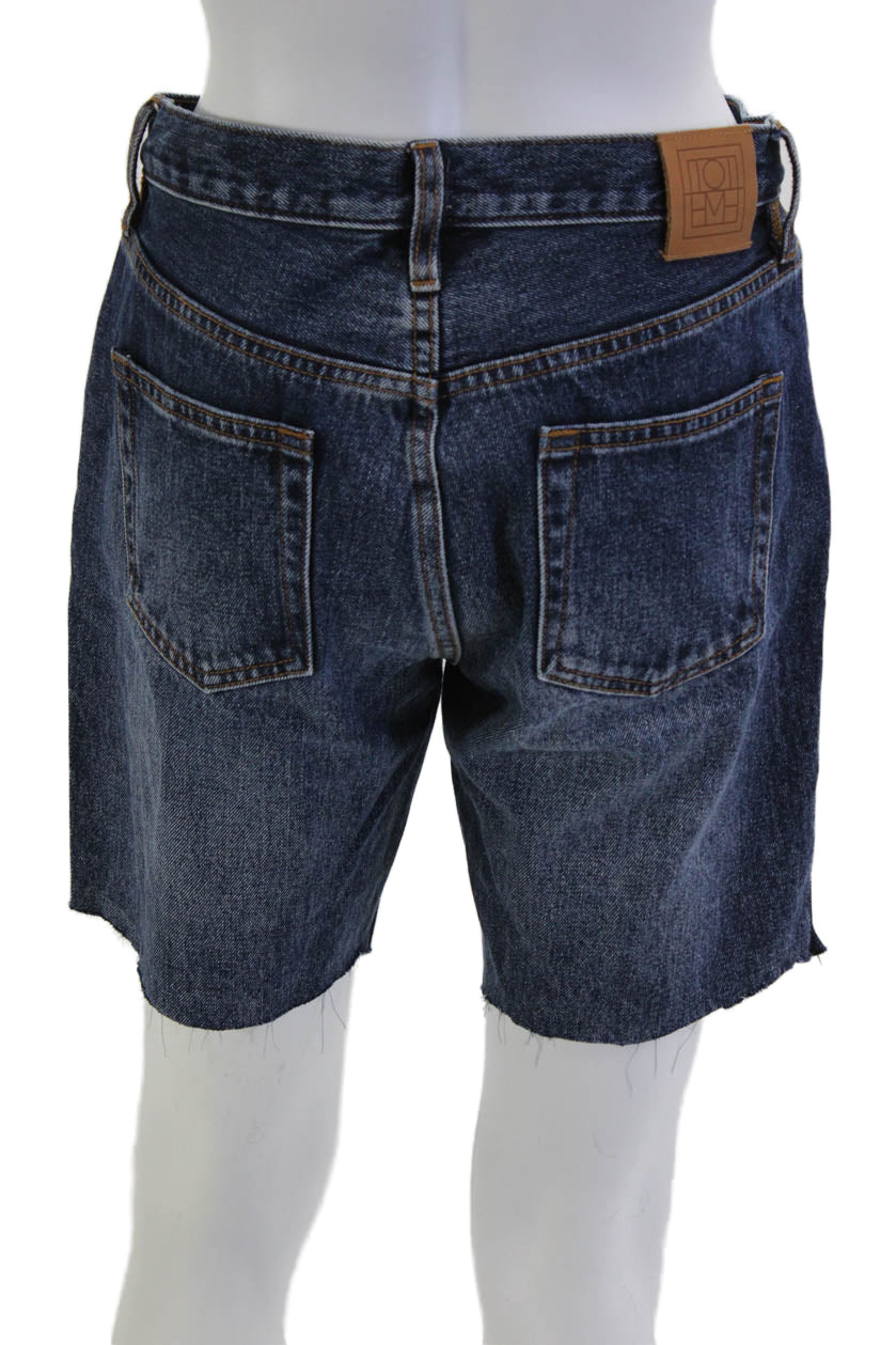 Toteme Unisex Bermuda Shorts Dark Blue 100% Cotton Button Size 27