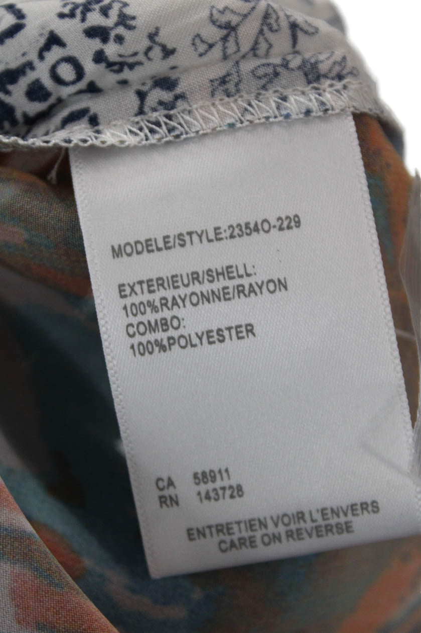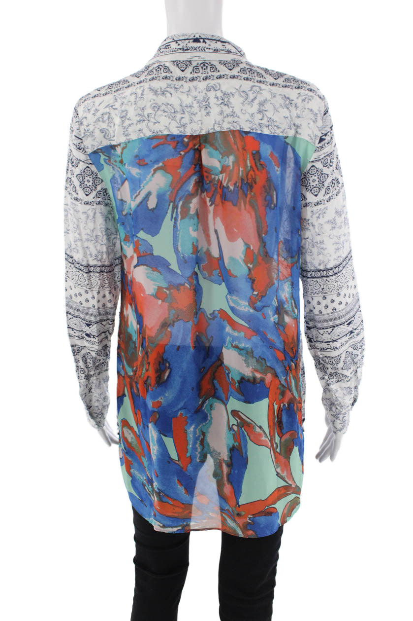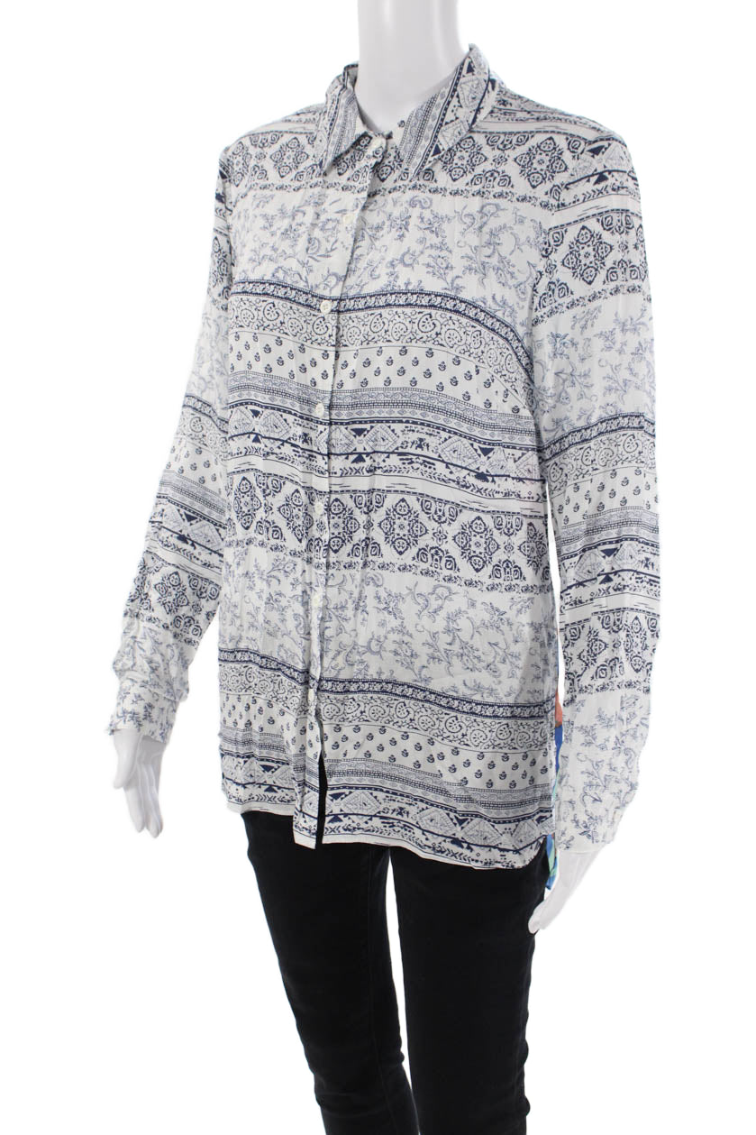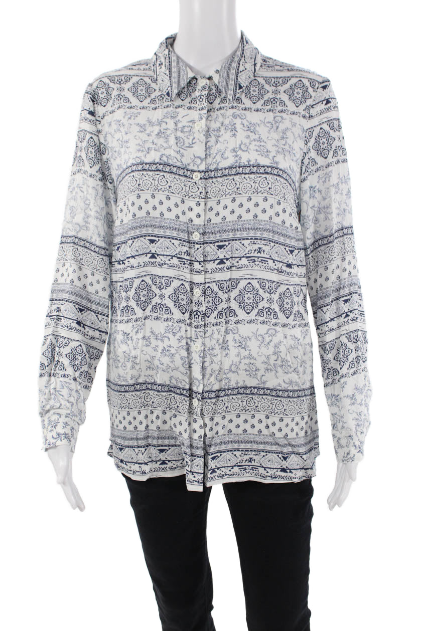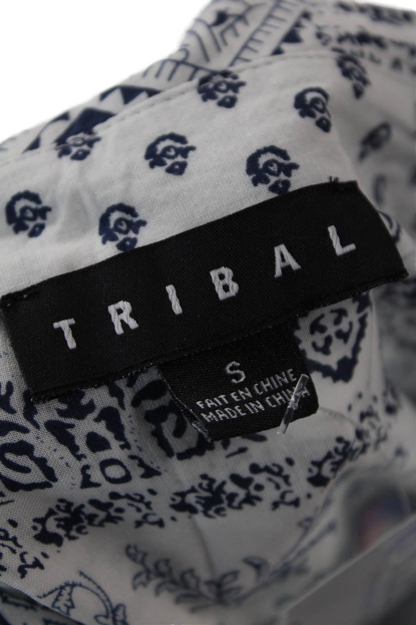 Tribal Womens Geometric Collared Long Sleeve Button-Down Shirt White Size S