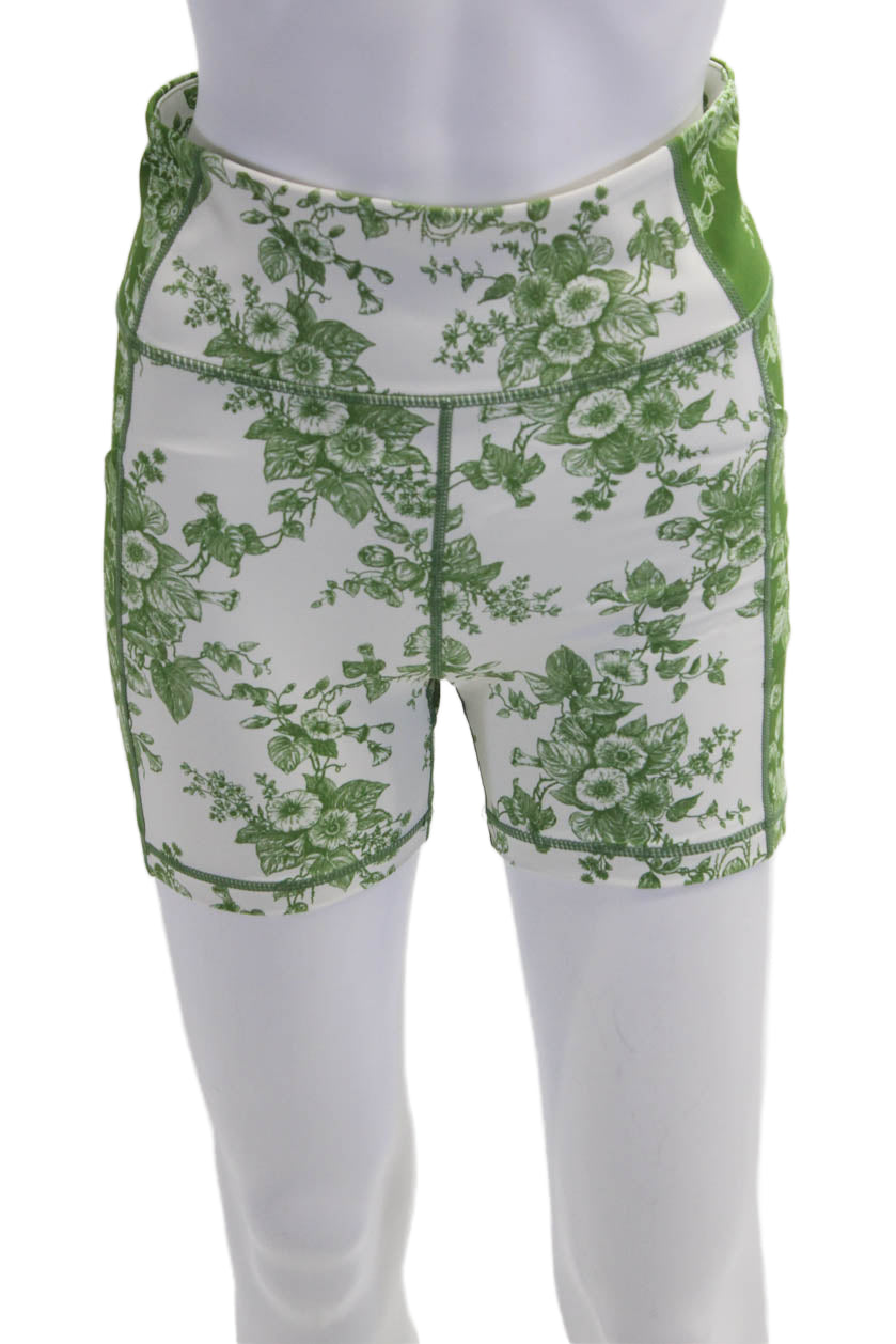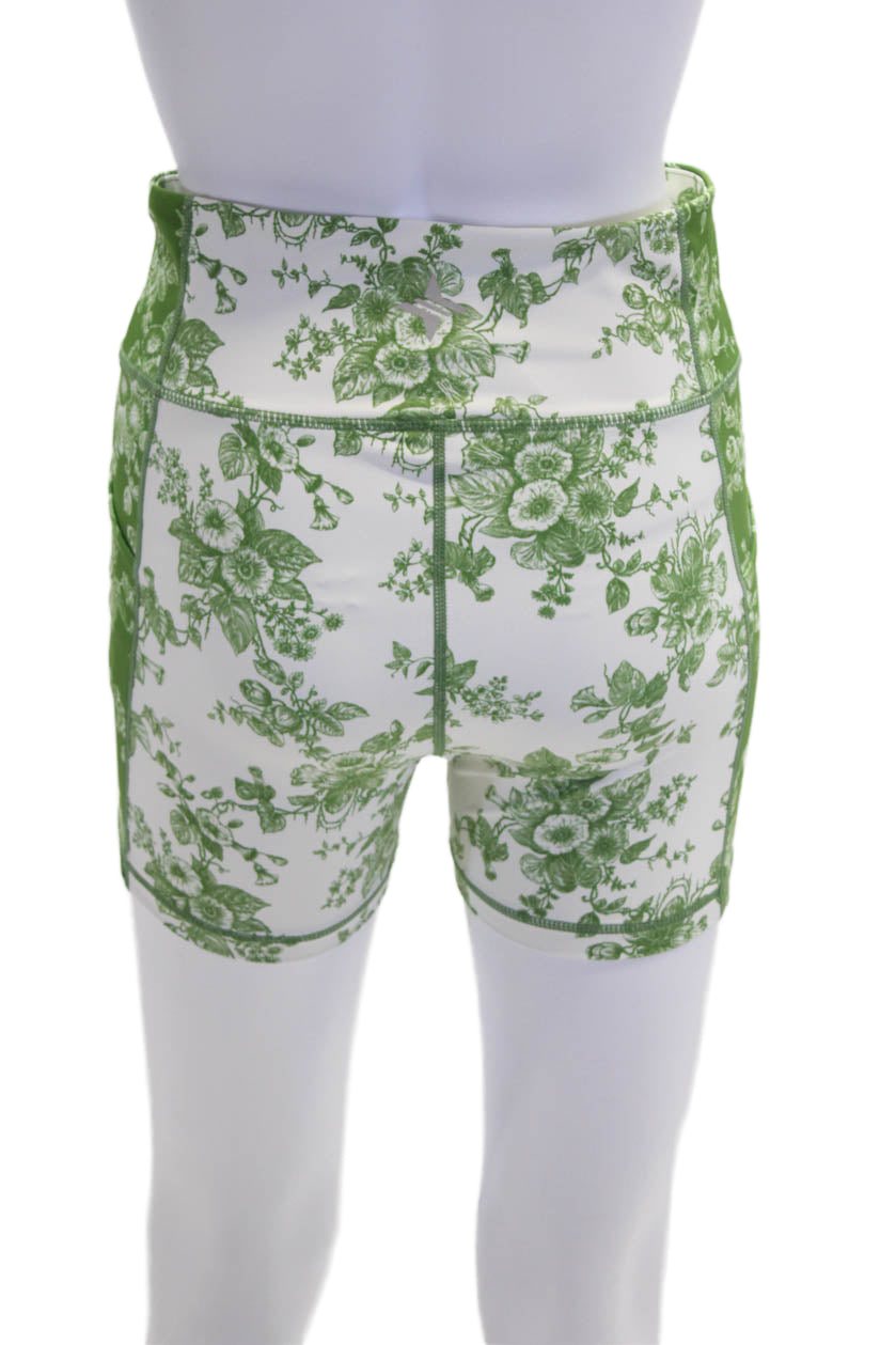 Tuckernuck Womens Activewear Floral Print Stretch Biker Shorts Green Size S