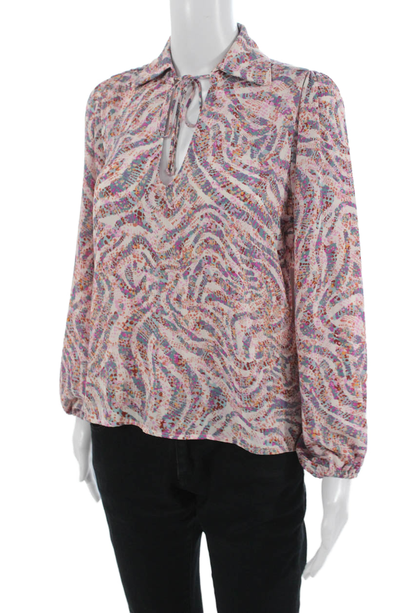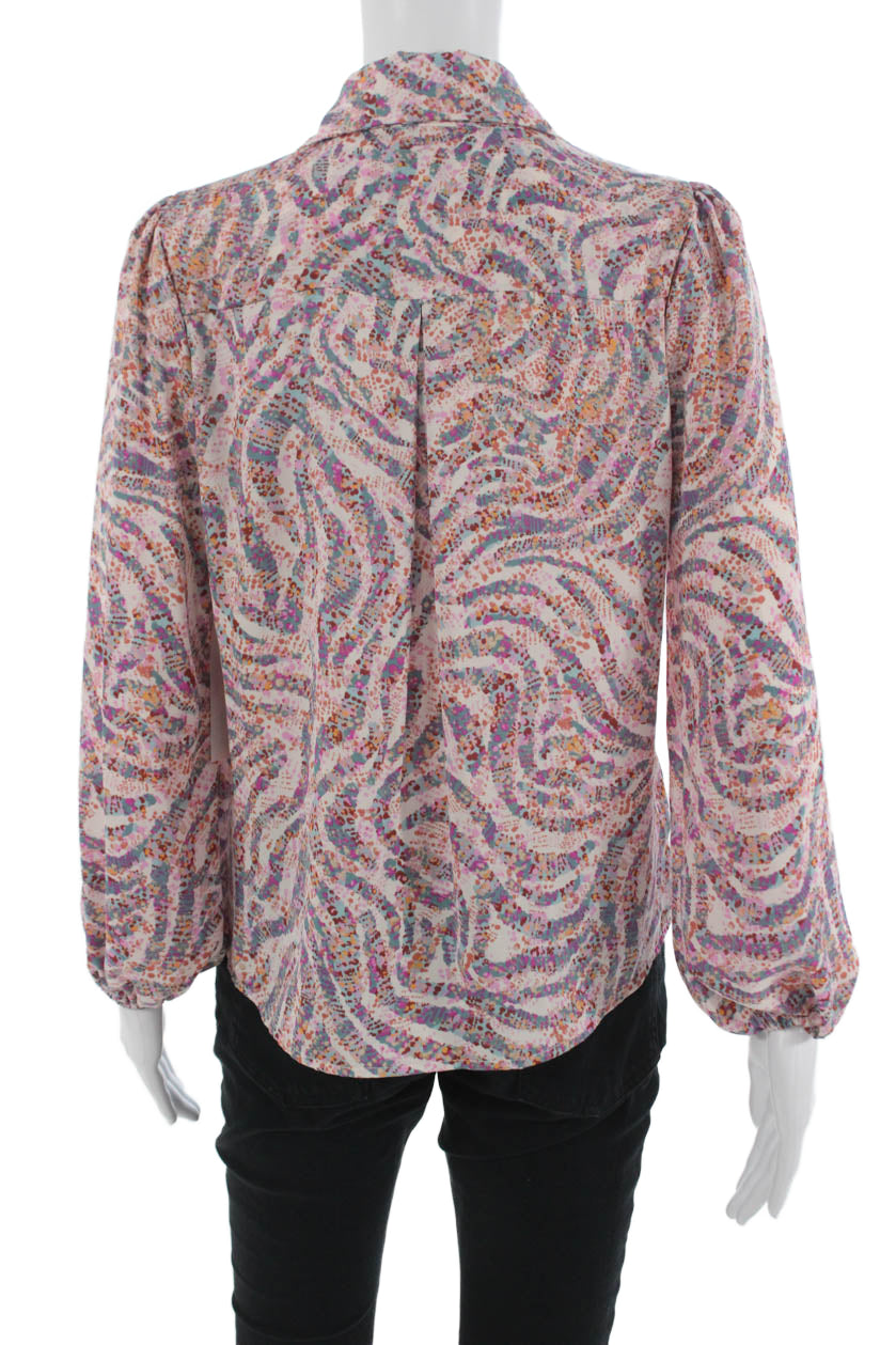 Veronica M Women Pink Bohemian Collared Blouse Long Sleeve Drawstring Size XS