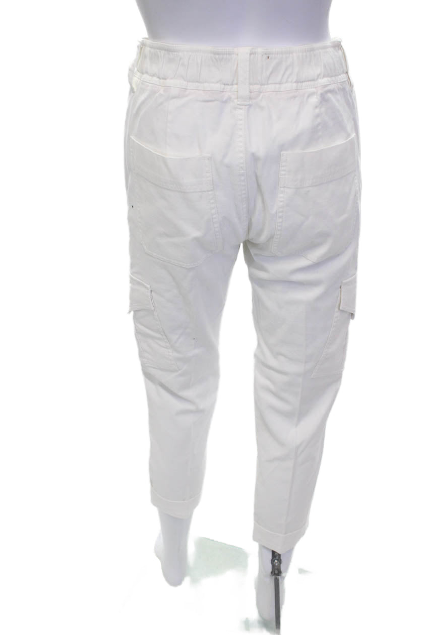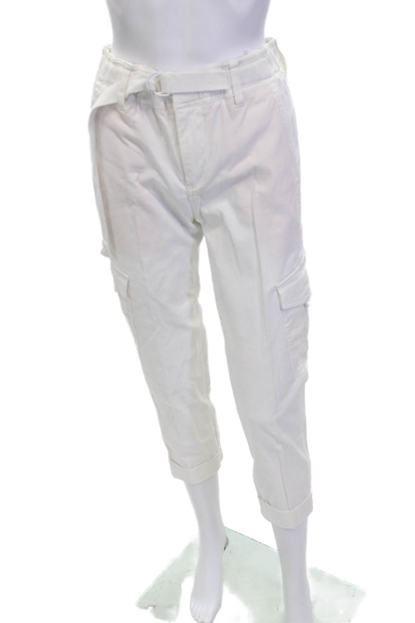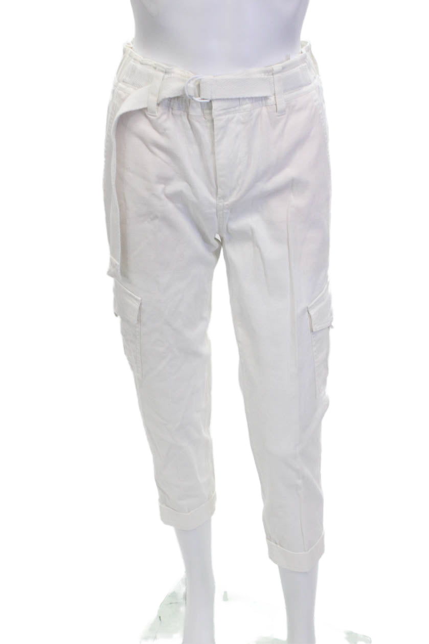Vince Women Cropped Cargo Pants White Buckle High Rise Size 2
