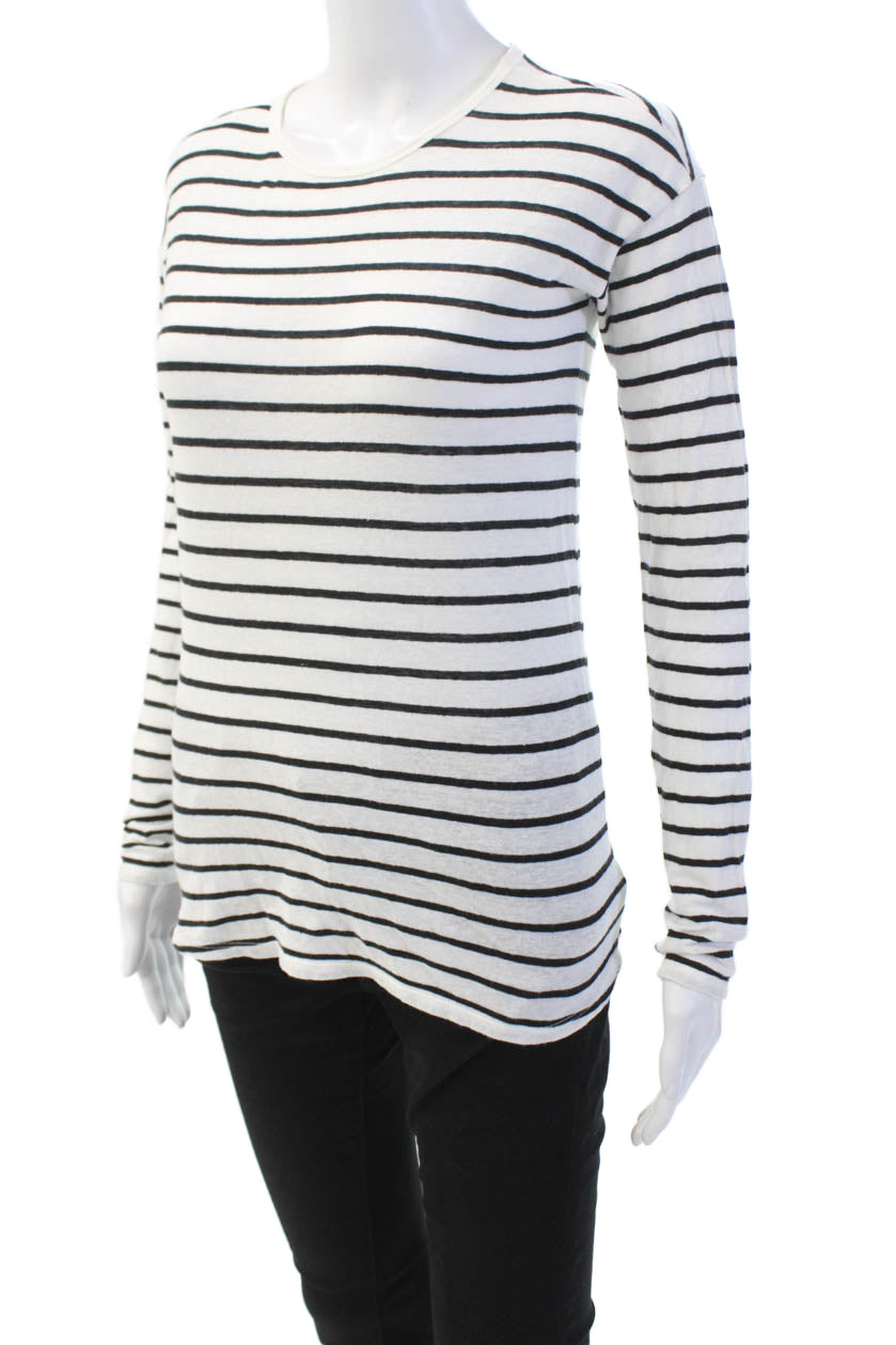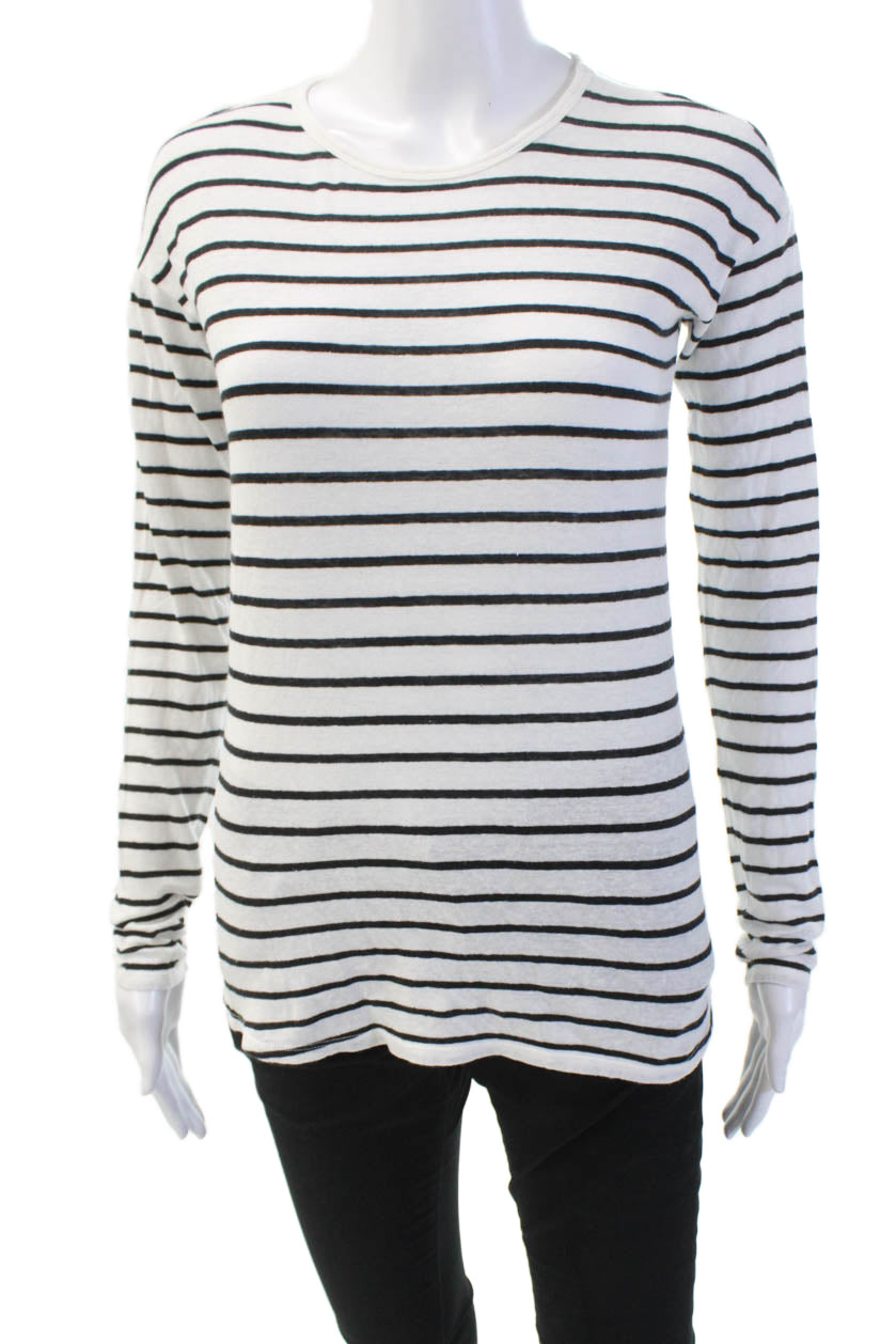 • Vince Womens Striped Relaxed Crew Neck Shirt White Black Cotton Size Petite