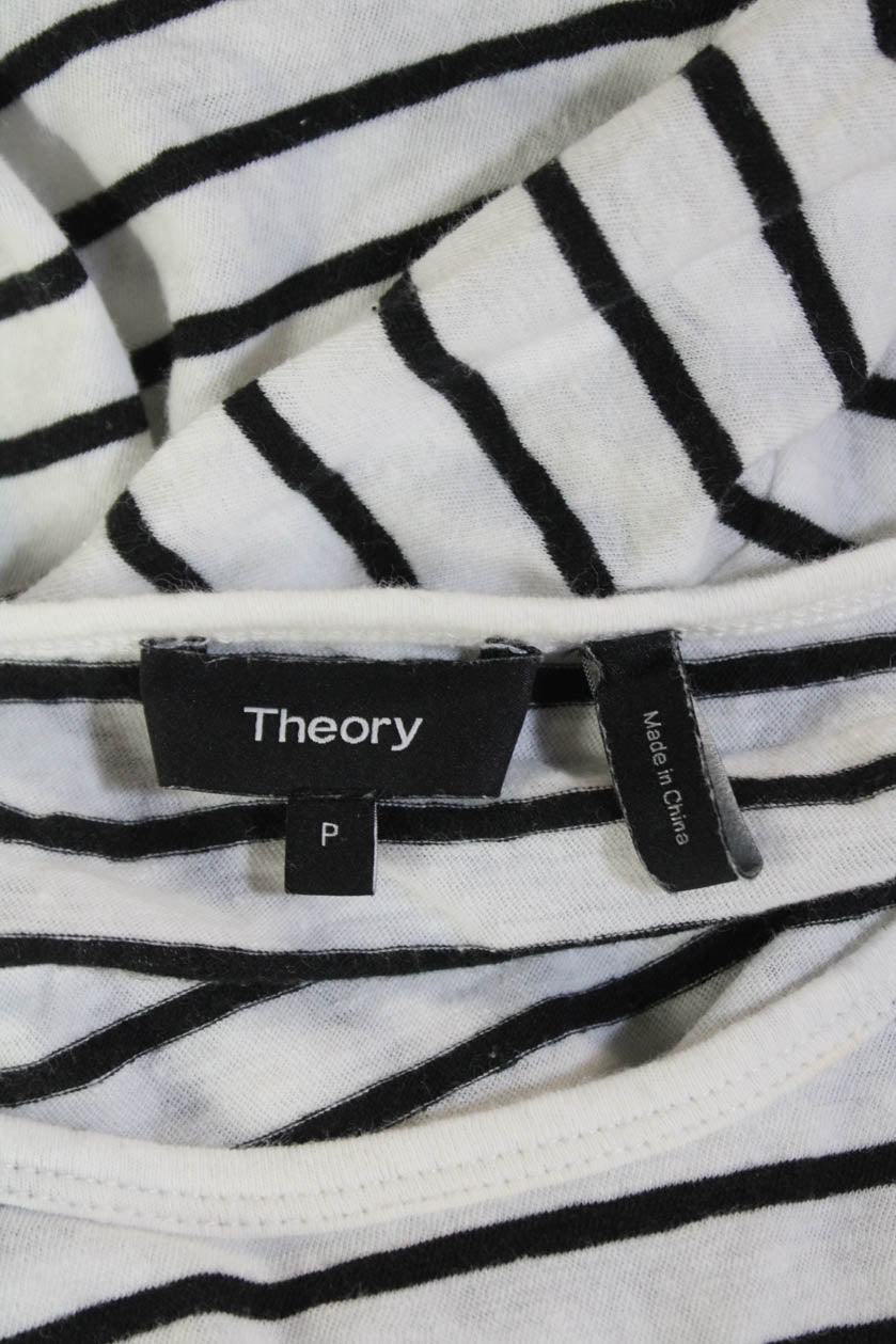 Vince Womens Striped Relaxed Crew Neck Shirt White Black Cotton Size Petite