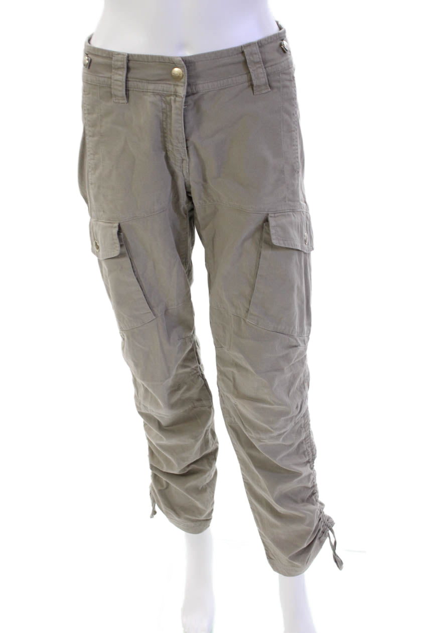 Weekend Max Mara Womens Cotton Zippered Ruched Straight Pants Gray Size 2