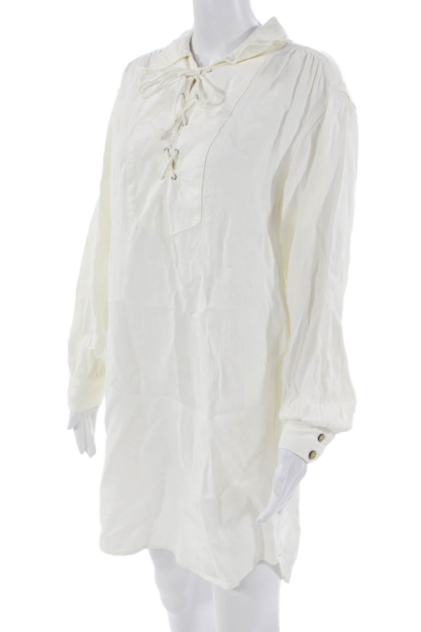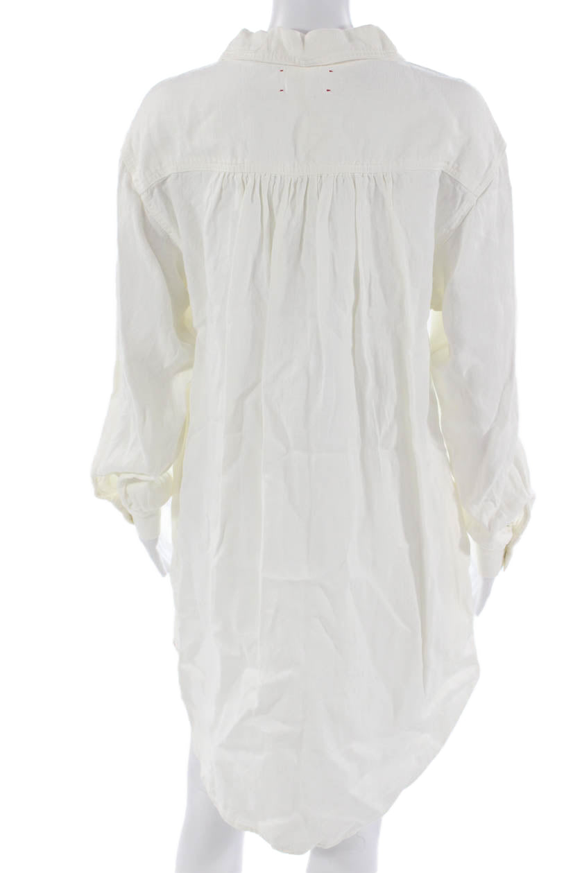 Xirena Unisex White Linen Short Bohemian Long Sleeve Button Dress Size XS