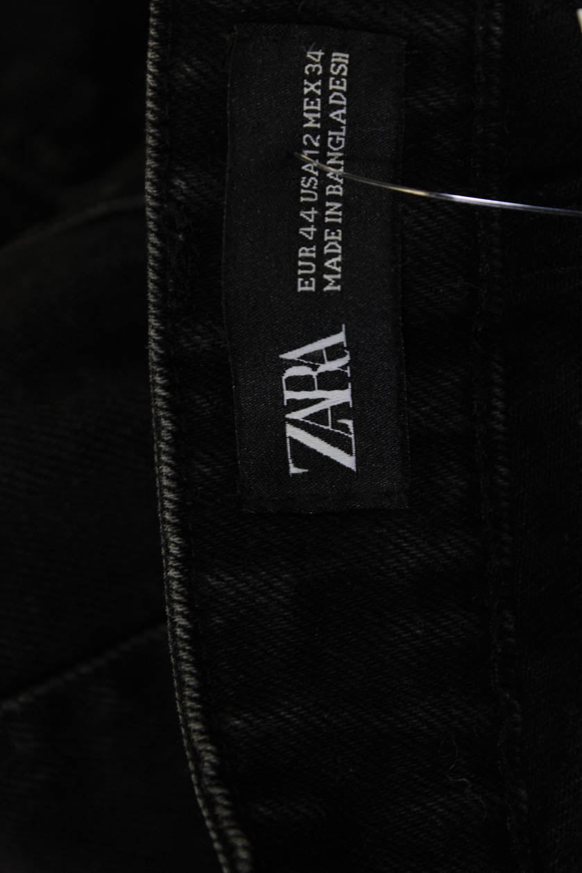 Zara Unisex Black Cotton Bermuda Shorts 90s Button Size 12
