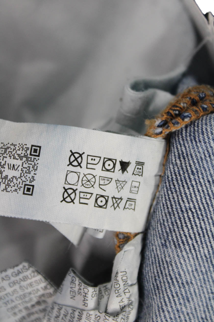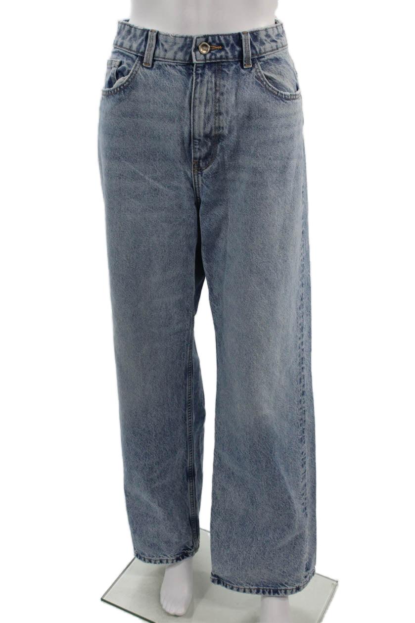 • Zara Unisex Wide-Leg Jeans Blue High Rise 100% Cotton Button Size 10