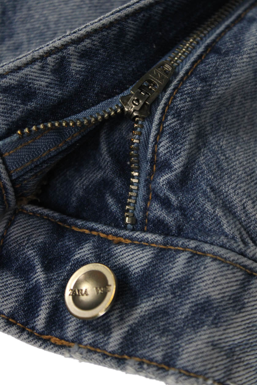 Zara Unisex Wide-Leg Jeans Blue High Rise 100% Cotton Button Size 10