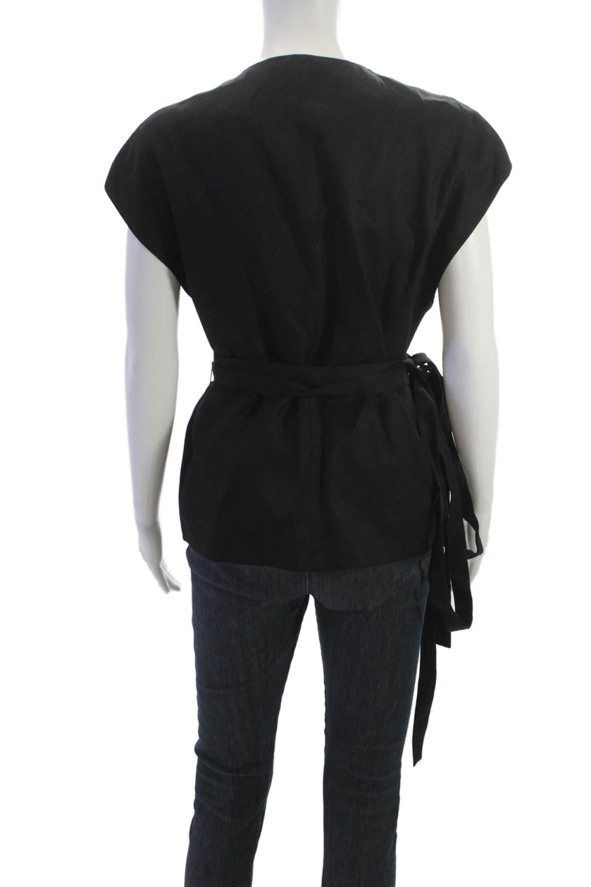 Zara Women Kimono Black V-Neck Tie Closure 100% Viscose Short Sleeve Size S