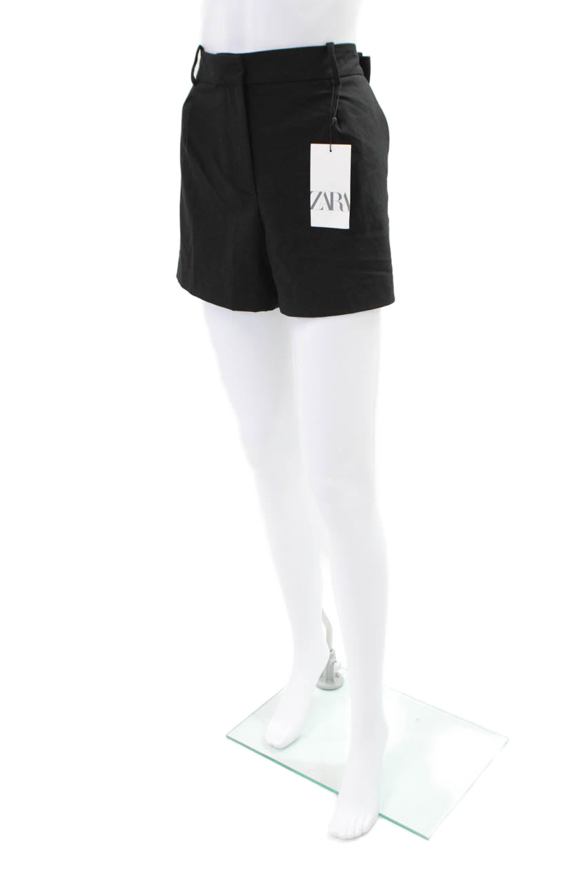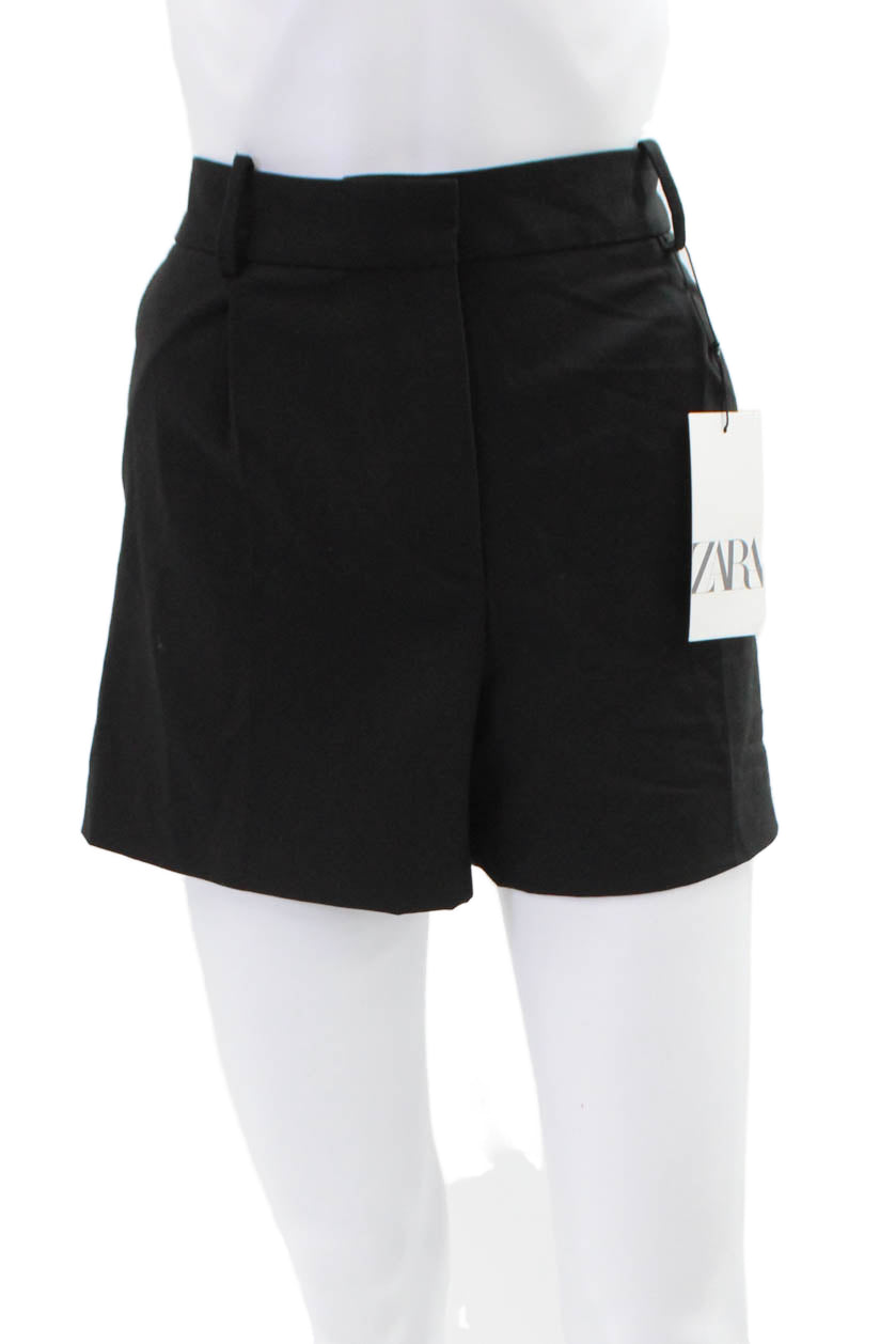 Zara Women's Pleated Front Pockets Dress Shorts Black Size L
