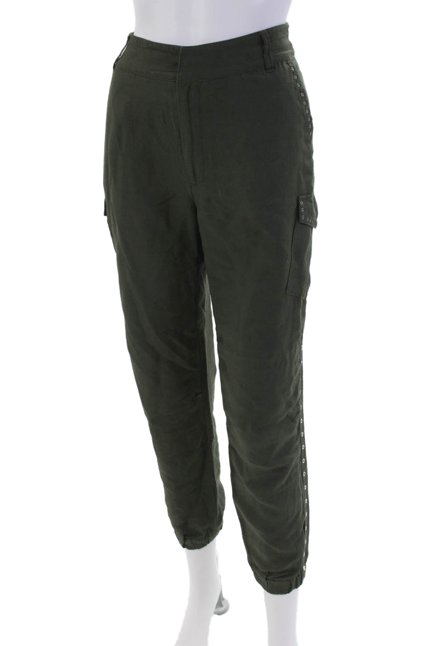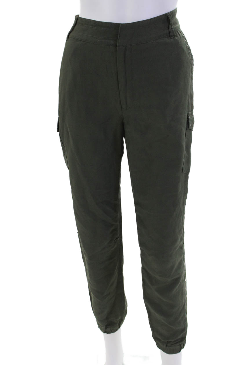 10 Crosby Derek Lam Womens Studded High-Rise Tapered Cargo Pants Green Size 6