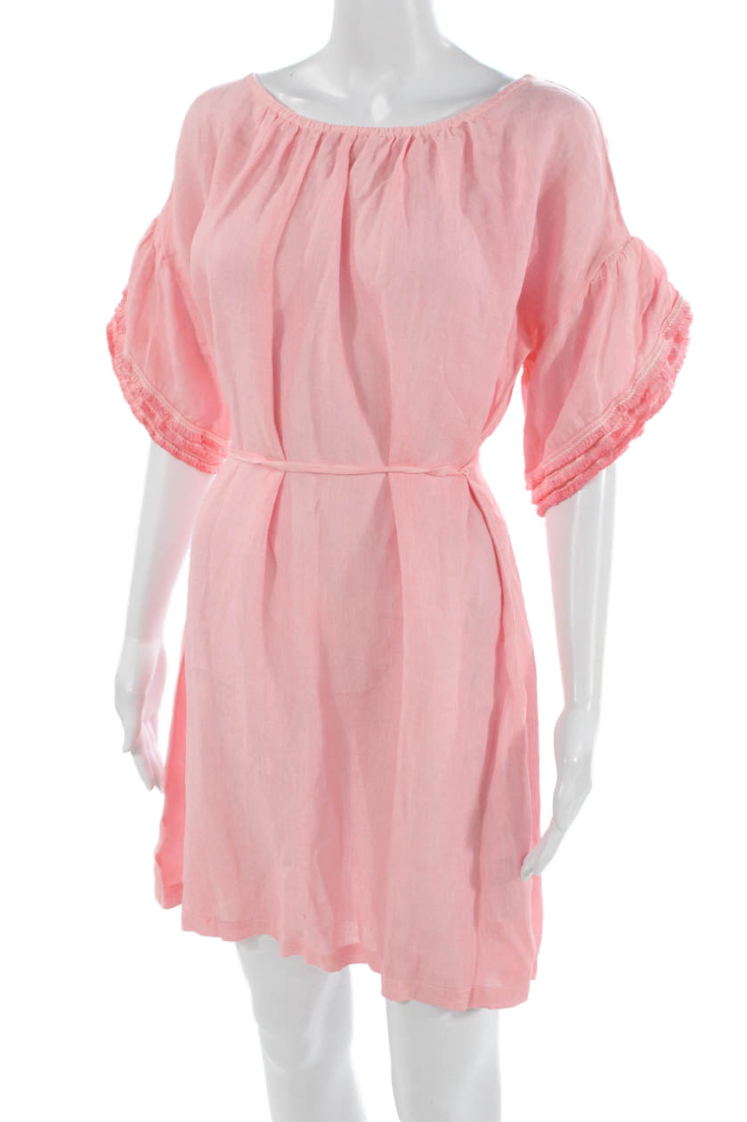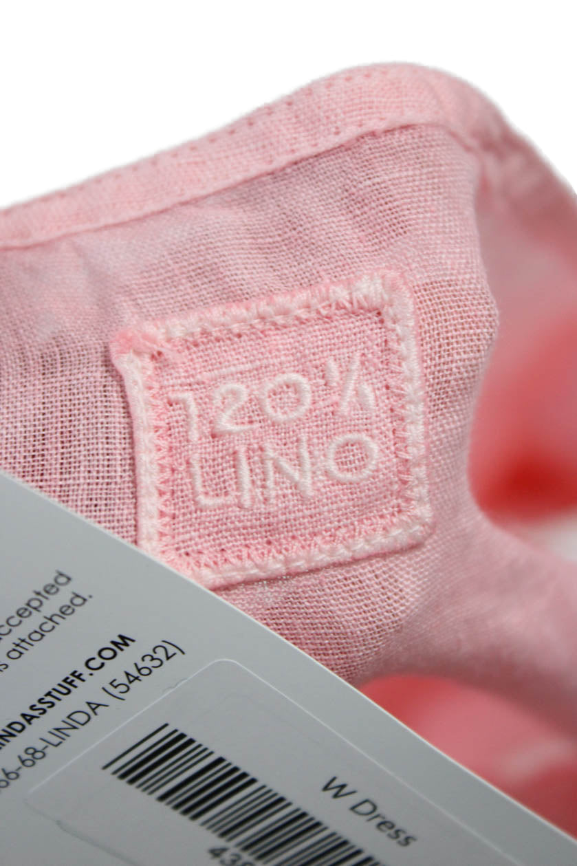 120% Lino Women Kaftan Sundress Pink Short Linen Round Neck Size 40