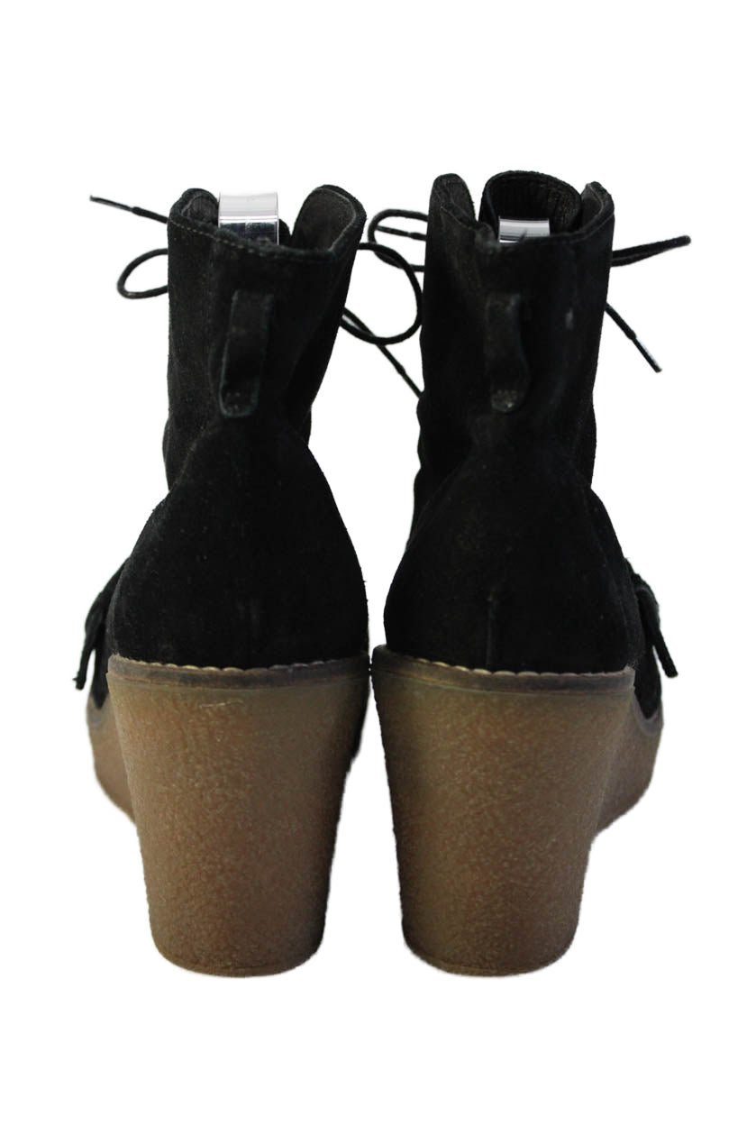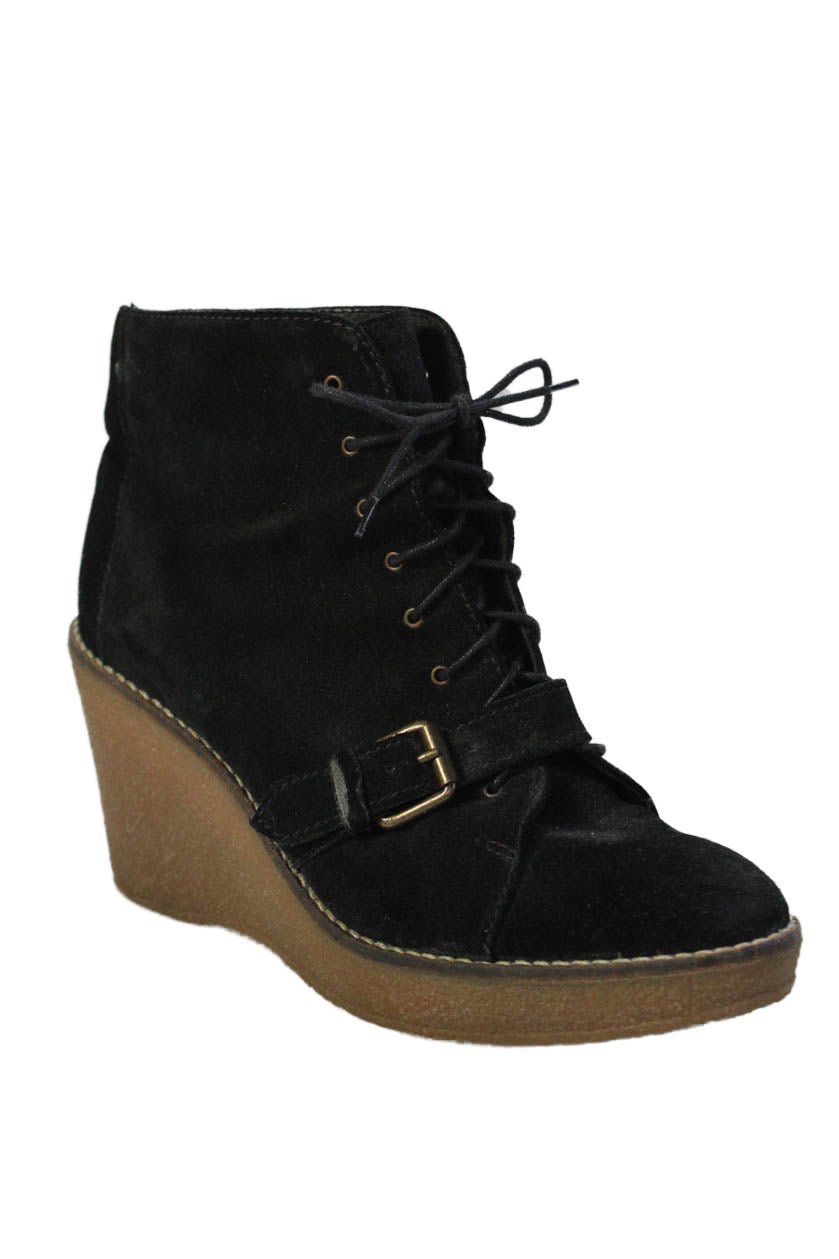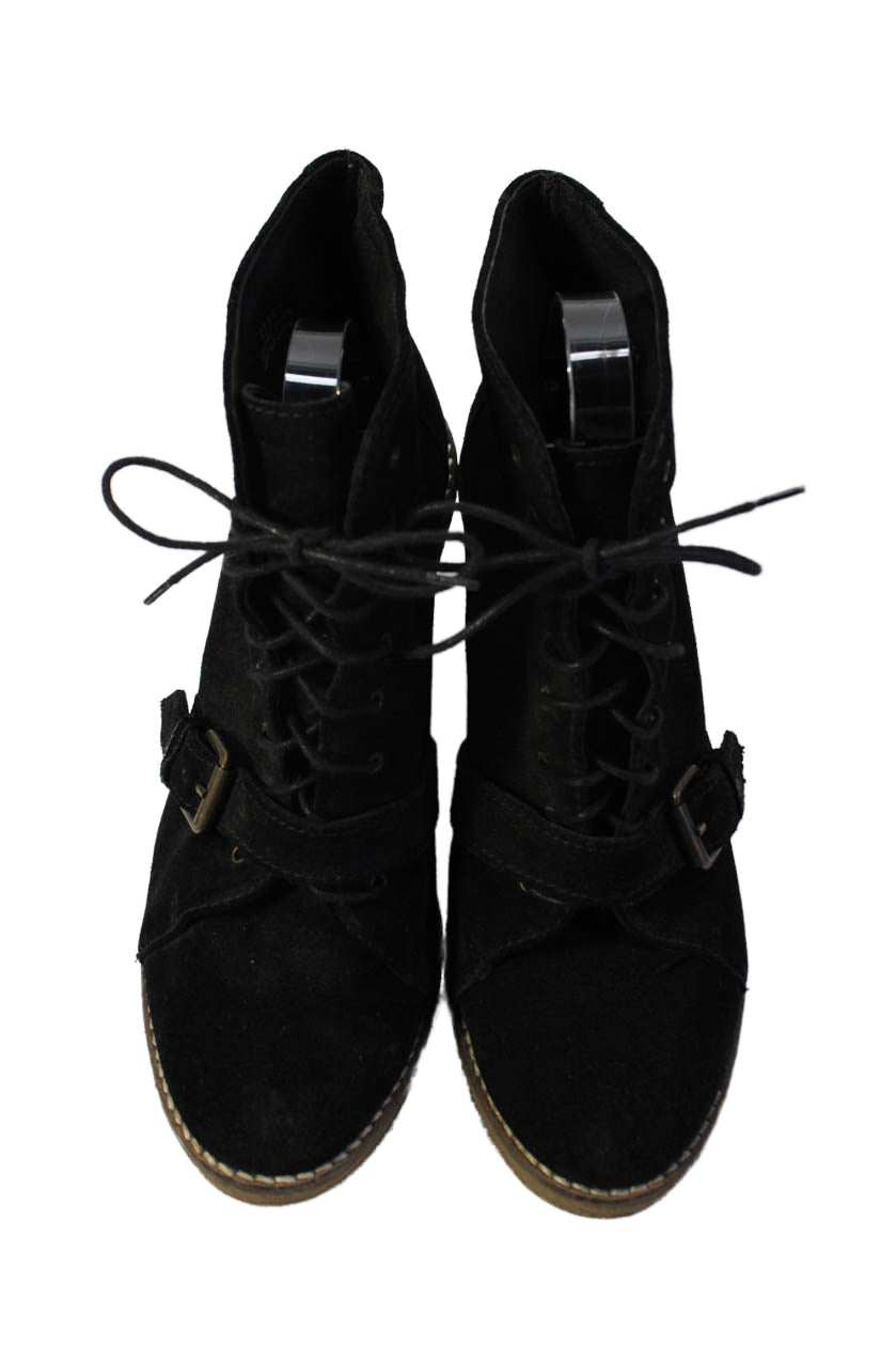 1937 Footwear Womens Suede Platform Lace Up Wedge Ankle Boots Black Size 10