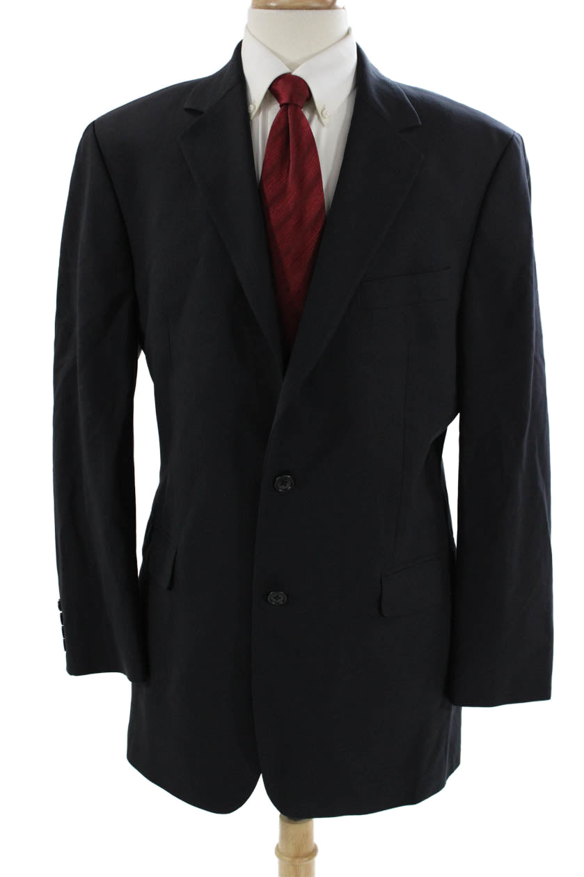 346 Brooks Brothers Mens Dark Blue Wool Blend Suit Jacket Button Solid Size 42