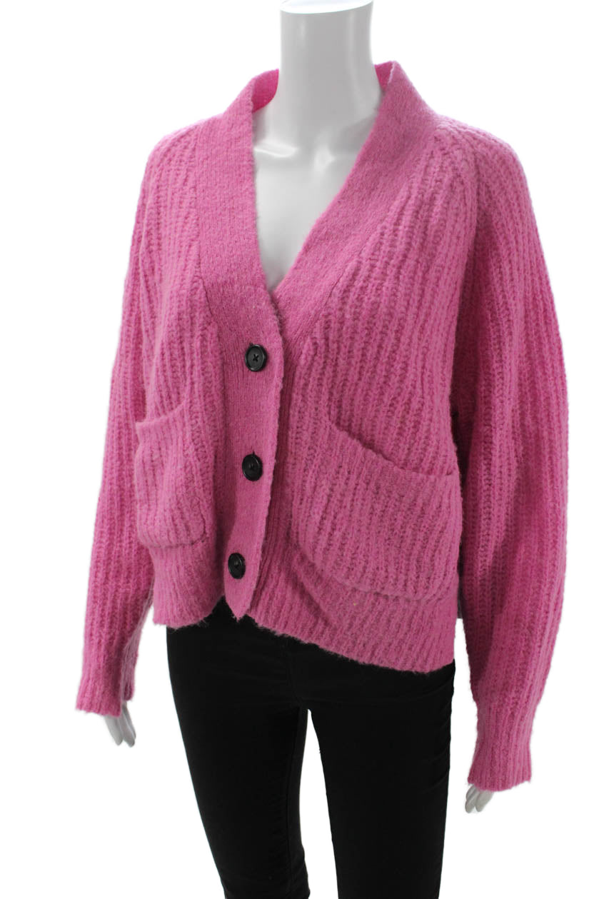 A.L.C. Unisex Cardigan Pink V-Neck Button Alpaca Wool Blend Size S