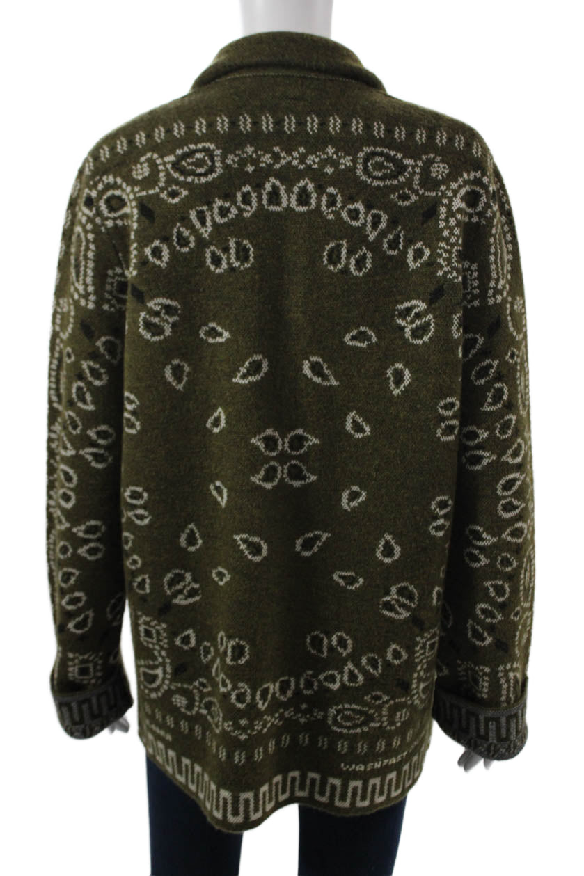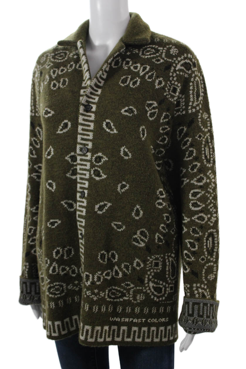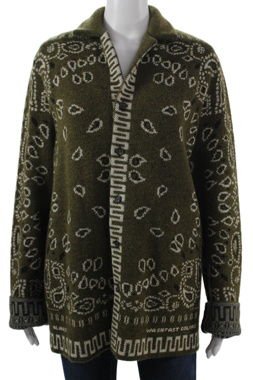 Alanui Unisex Green Paisley Collared Cardigan Button Long Sleeve Size S