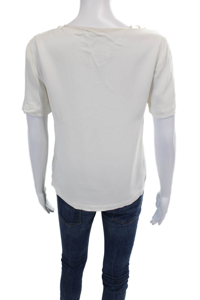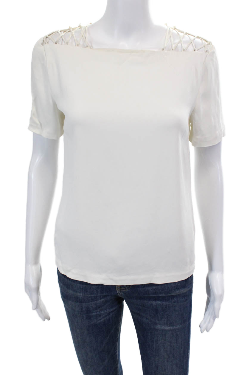 ALC Womens Short Sleeve Strappy Boat Neck Boxy Top Blouse White Size 0