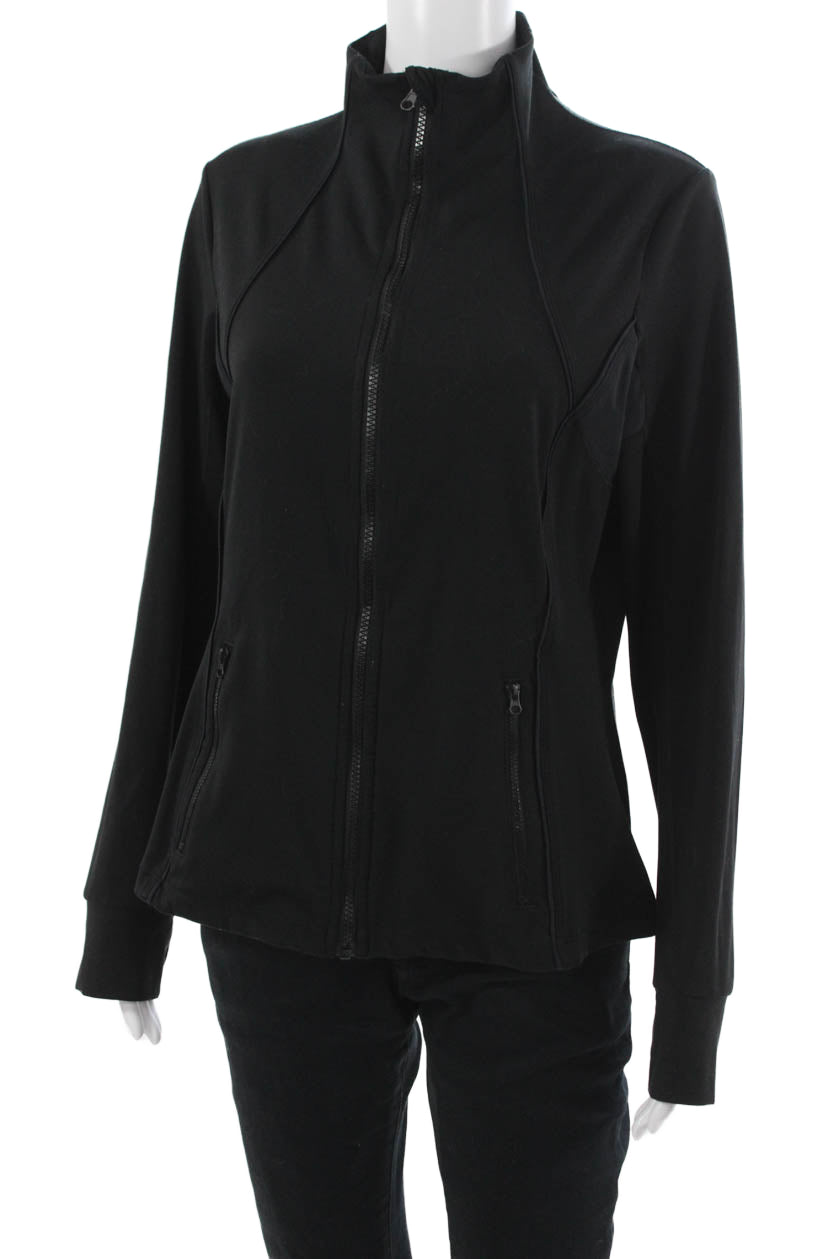 All Access Womens Windbreaker Jacket Black High Neck Zip Long Sleeve Size XL