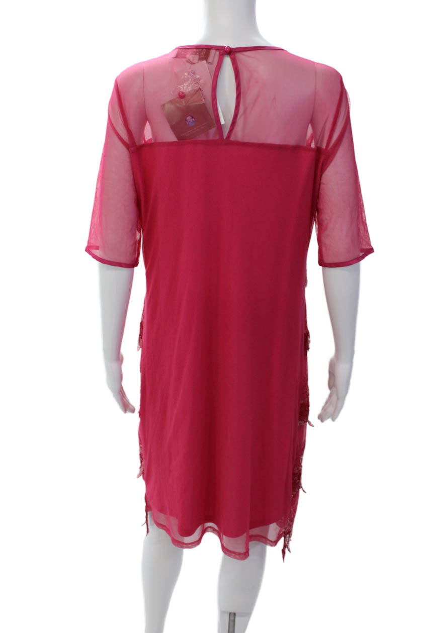 American Glamour by Badgley Mischka Womens Sequins Shift Dress Hot Pink Size L