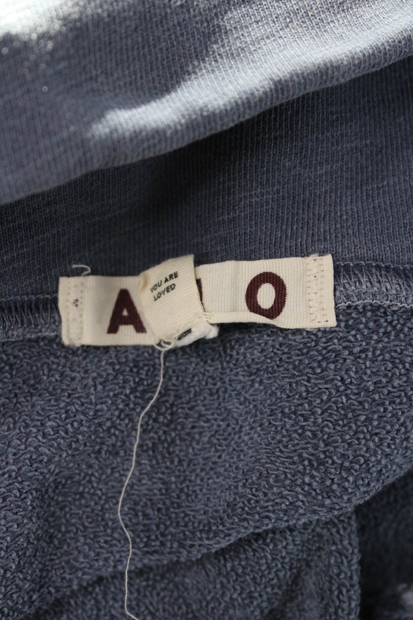 Amo Women Henley Sweatshirts Blue High Neck Zip Long Sleeve Cotton Size XS