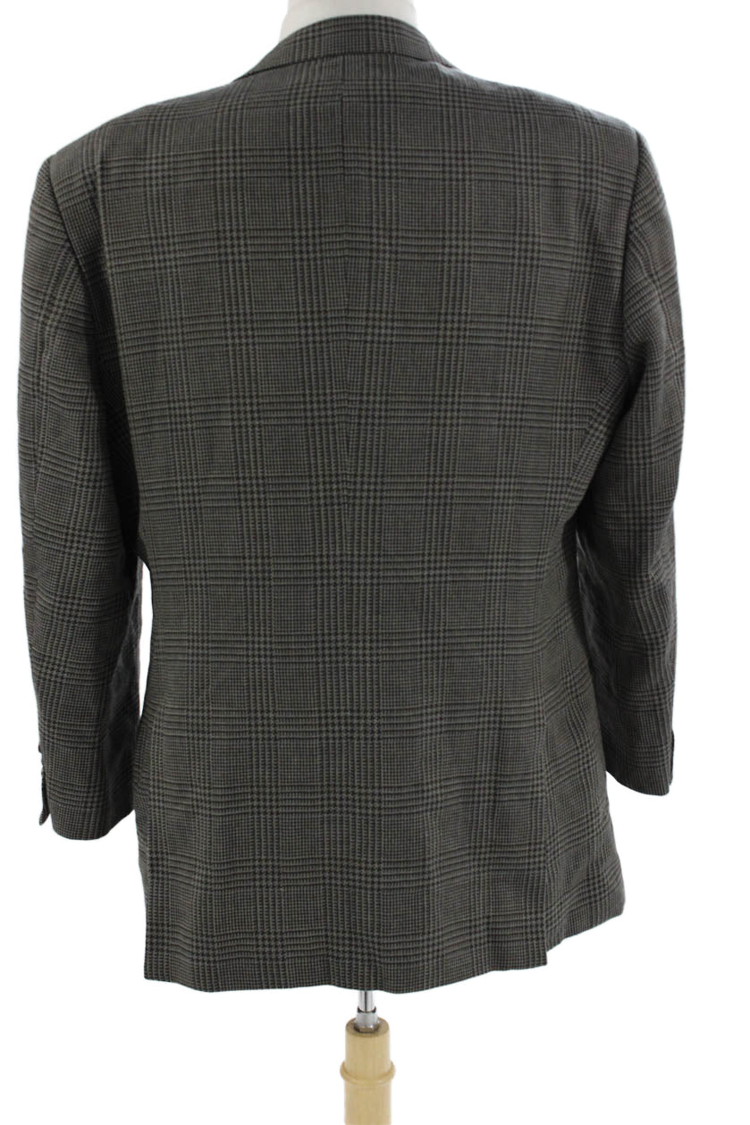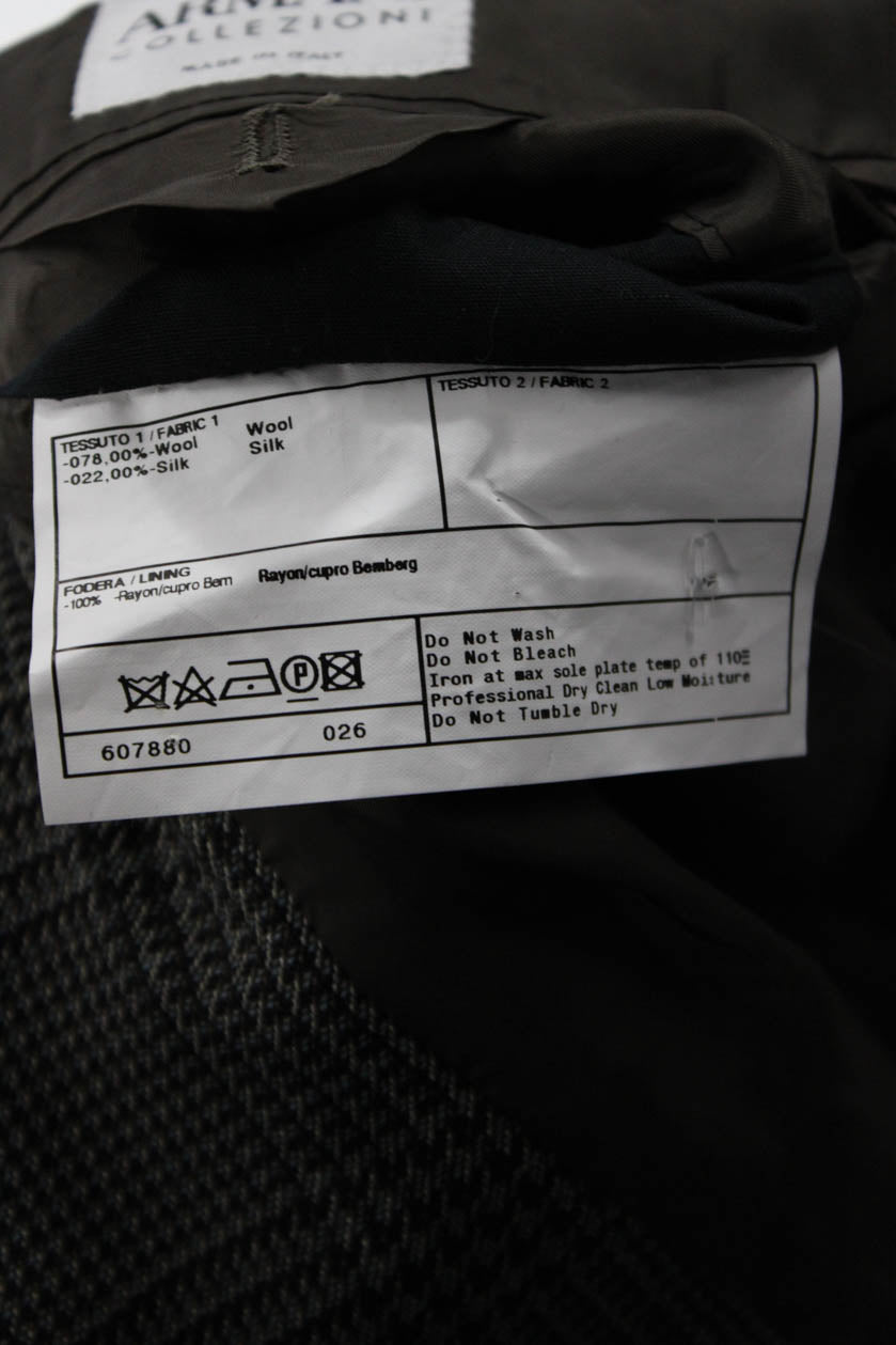 Armani Collezioni Mens Gray Check Suit Jacket Wool Silk Button Collared Size 44