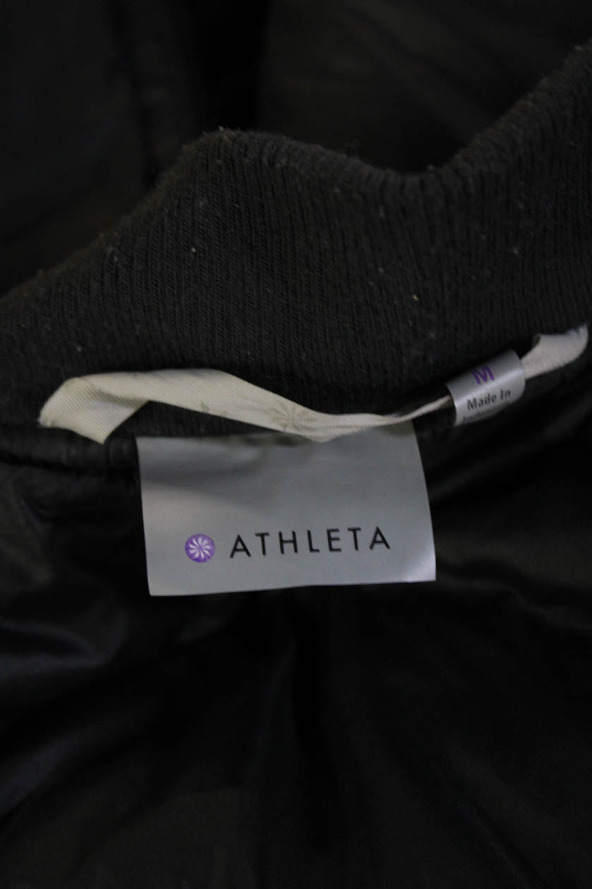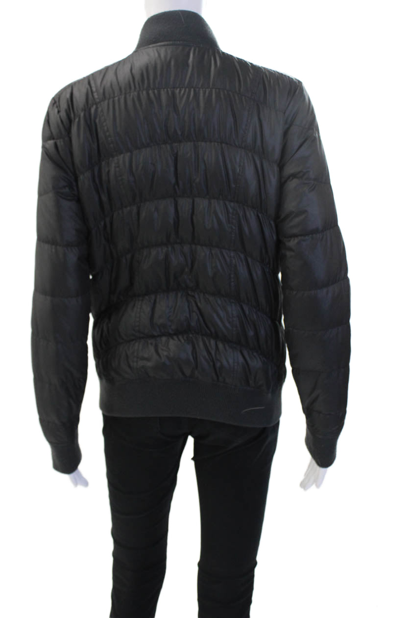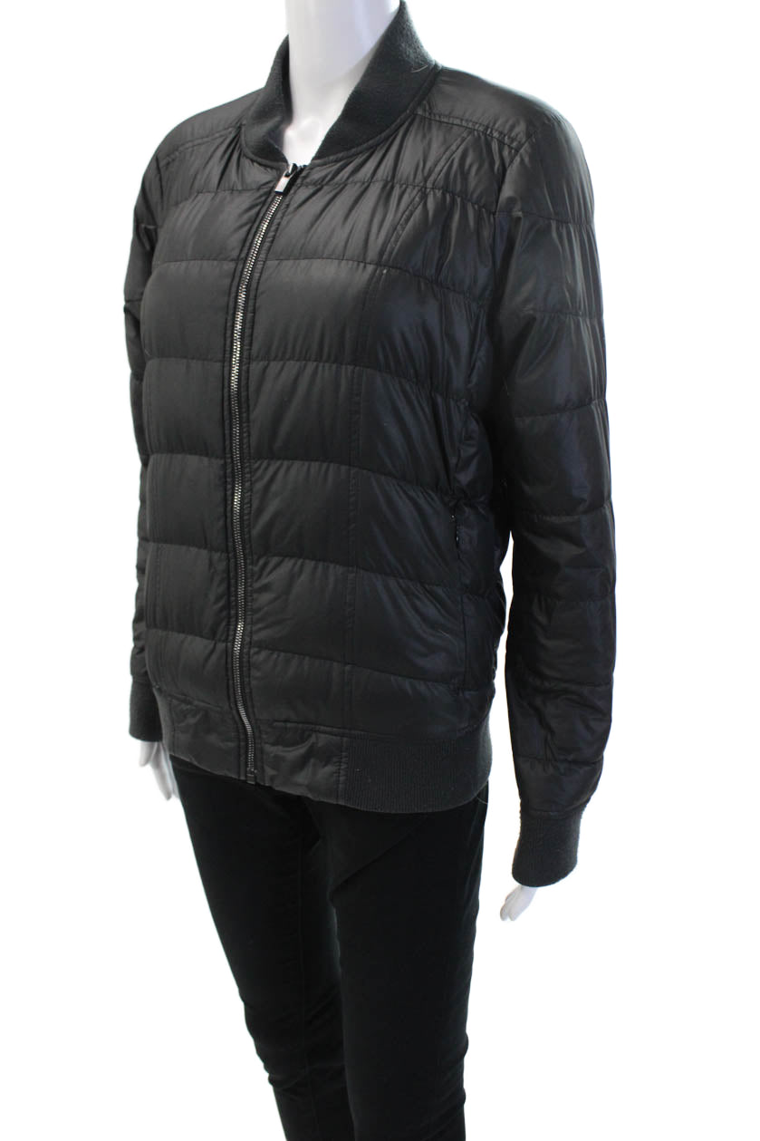 Athleta Unisex Quilted Puffer Bomber Jacket Black Zip Size M