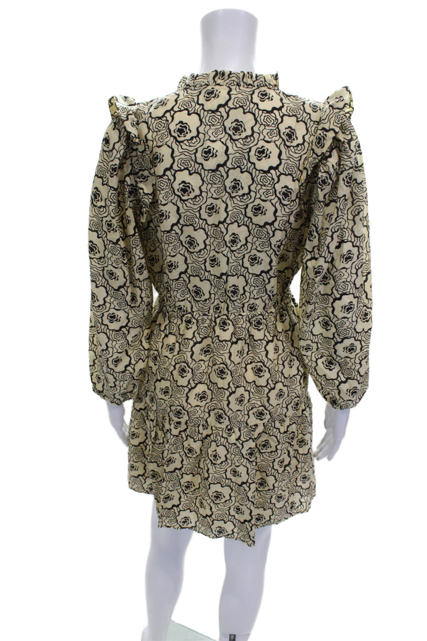 Ba&Sh Womens Fit & Flare Floral V Neck Long Sleeve Beige Dress Size S