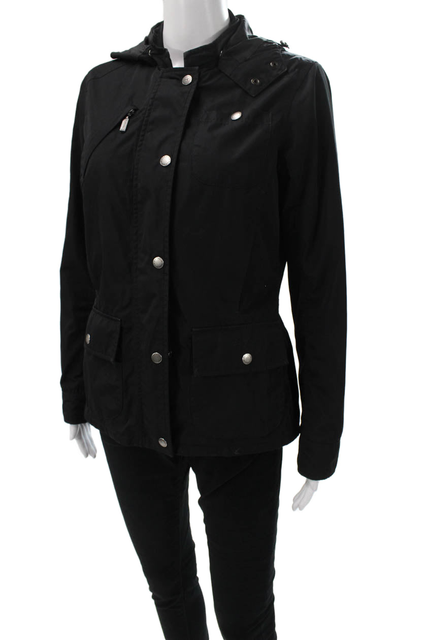 Barbour Women Rain Coat Black Polyamide Blend Button Closure Size 6