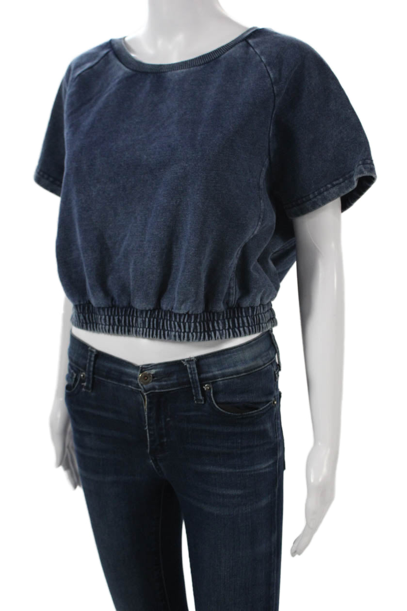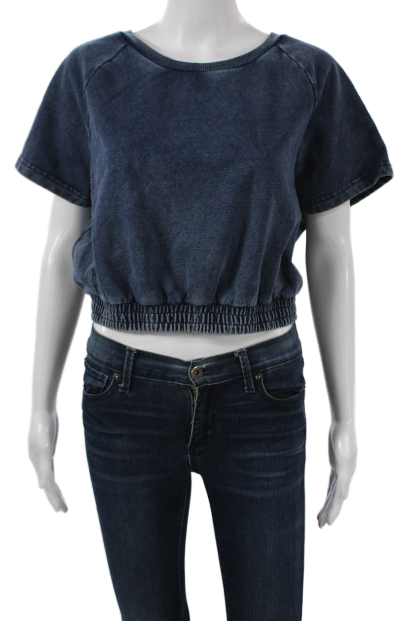 BB Dakota x Steve Madden Women Cropped Dark Blue Short Sleeve T Shirt Size M