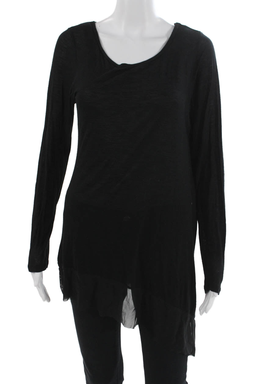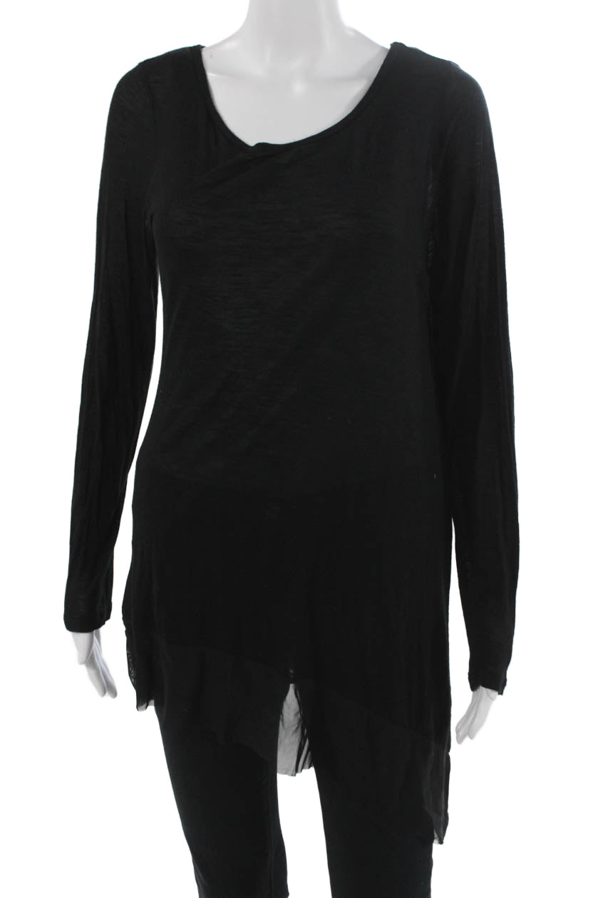 BCBGMAXAZRIA Womens Tunic T-Shirt Black Modal Scoop Neck Long Sleeve Size L